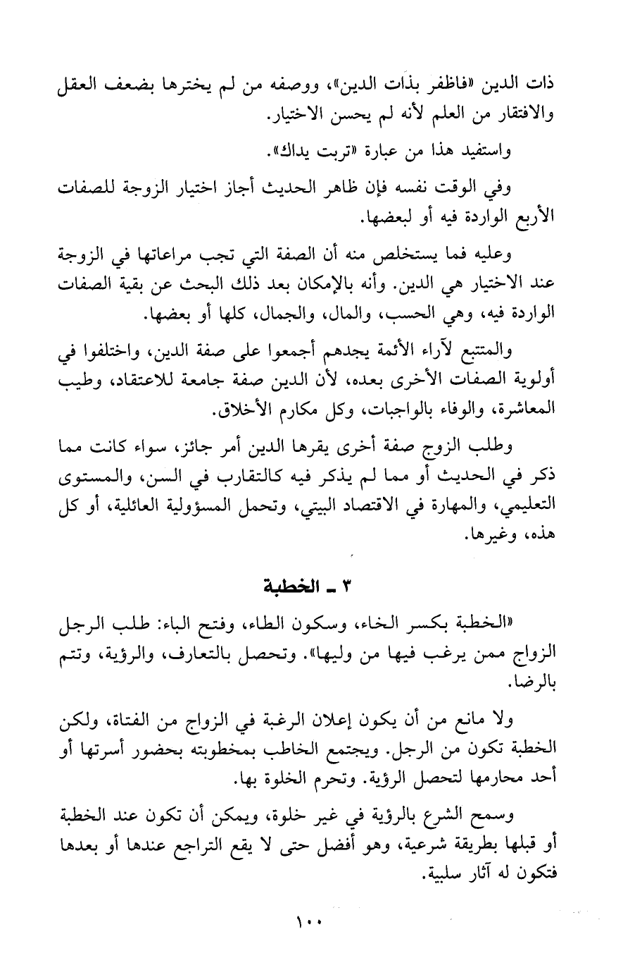 ذات الدين "فاظفر بذات الدين" ووصفه من لم يخترها يضعف العقل والافتقار من العلم لأنه لم يحسن الاختيار.