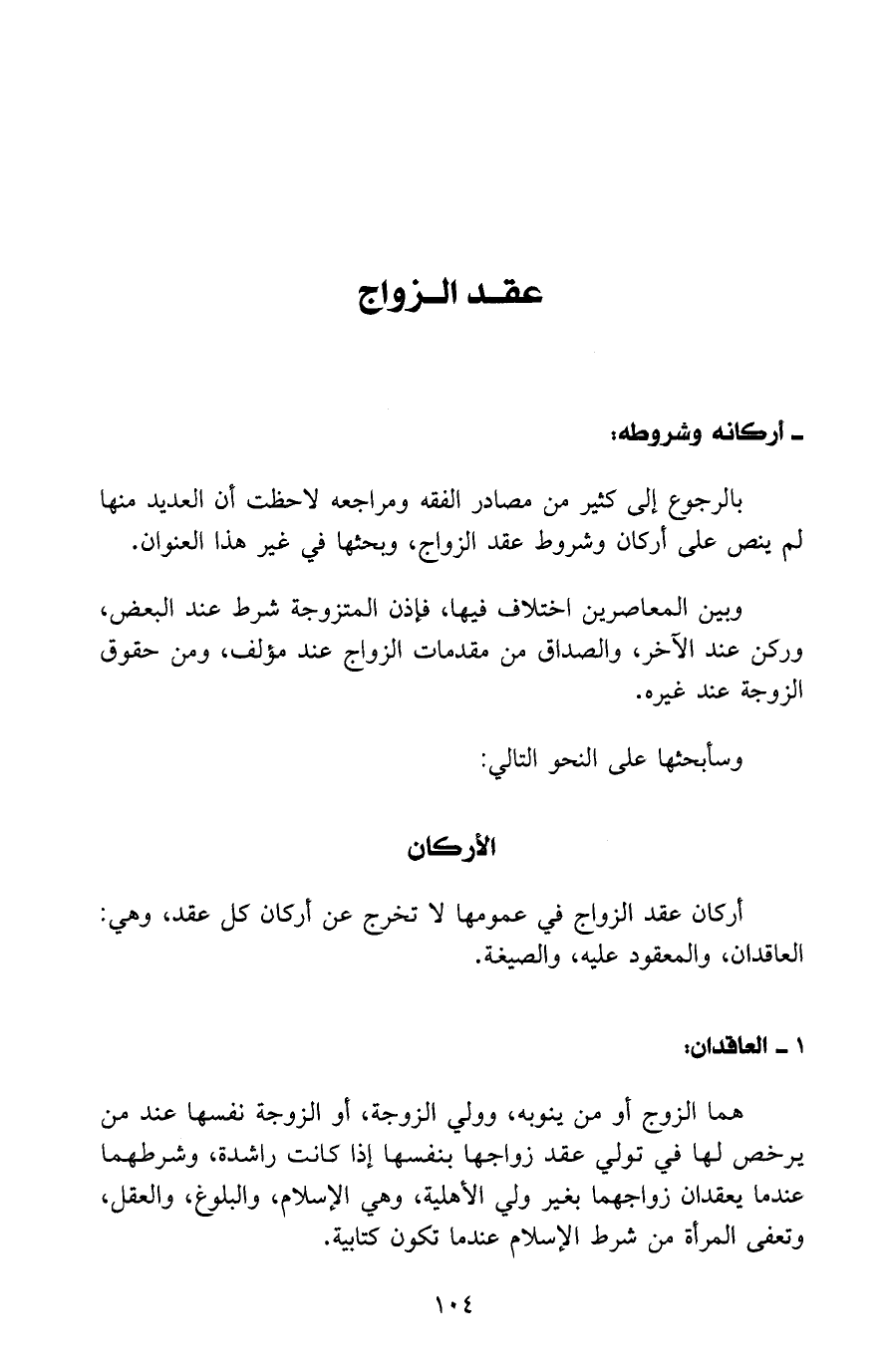 بالرجوع إلى كثير من مصادر الفقه ومراجعه لاحظت أن العديد منها لم ينص على أركان وشروط عقد الزواج، وبحثها في غير هذا العنوان.
