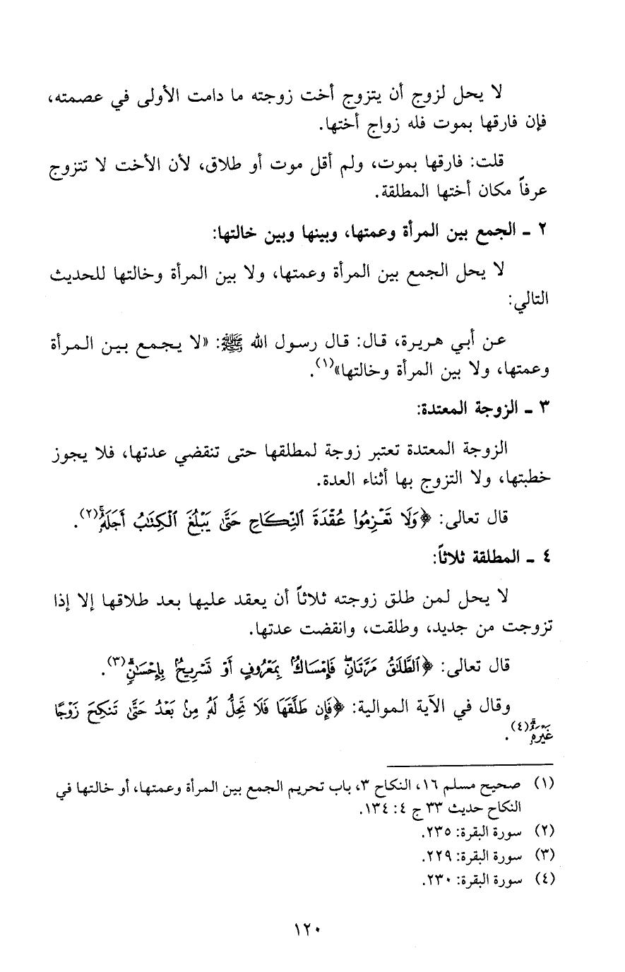 1 صحيح مسلم 16، النكاح3، باب تحريم الجمع بين المرأة وعمتها، أو خالتها في النكاح حديث 33ج 4: 134.