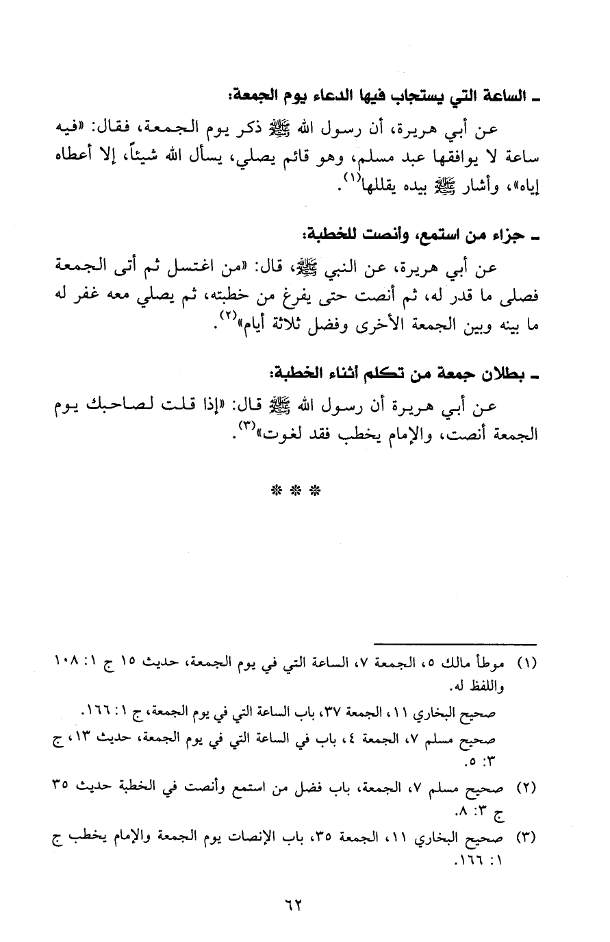 1 موطأ مالك5، الجمعة7، الساعة التي في يوم الجمعة، حديث 15ج1: 108 واللفظ له.