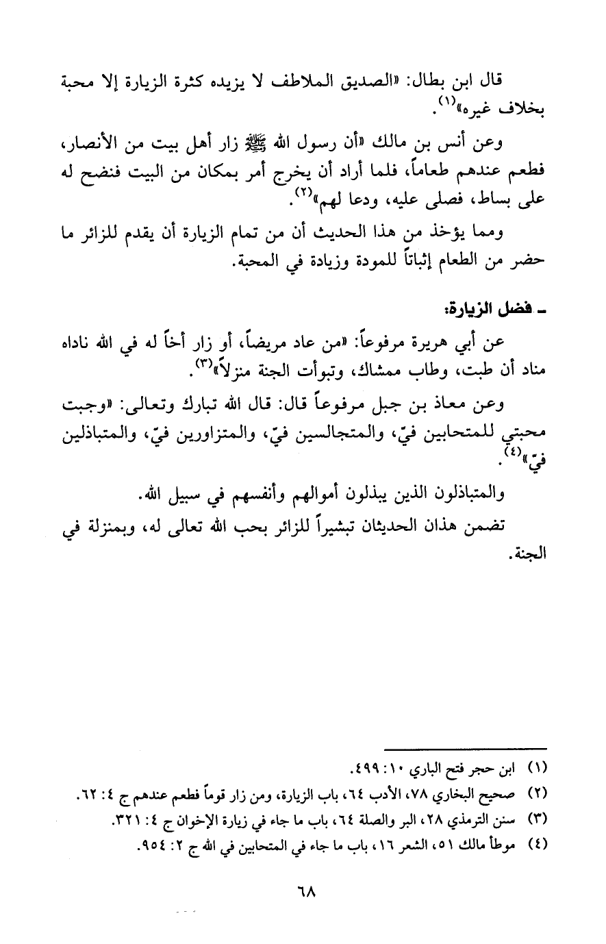 3 سنن الترمذي 28، البر والصلة 64، باب ما جاء في زيارة الأخوان ج4: 321.