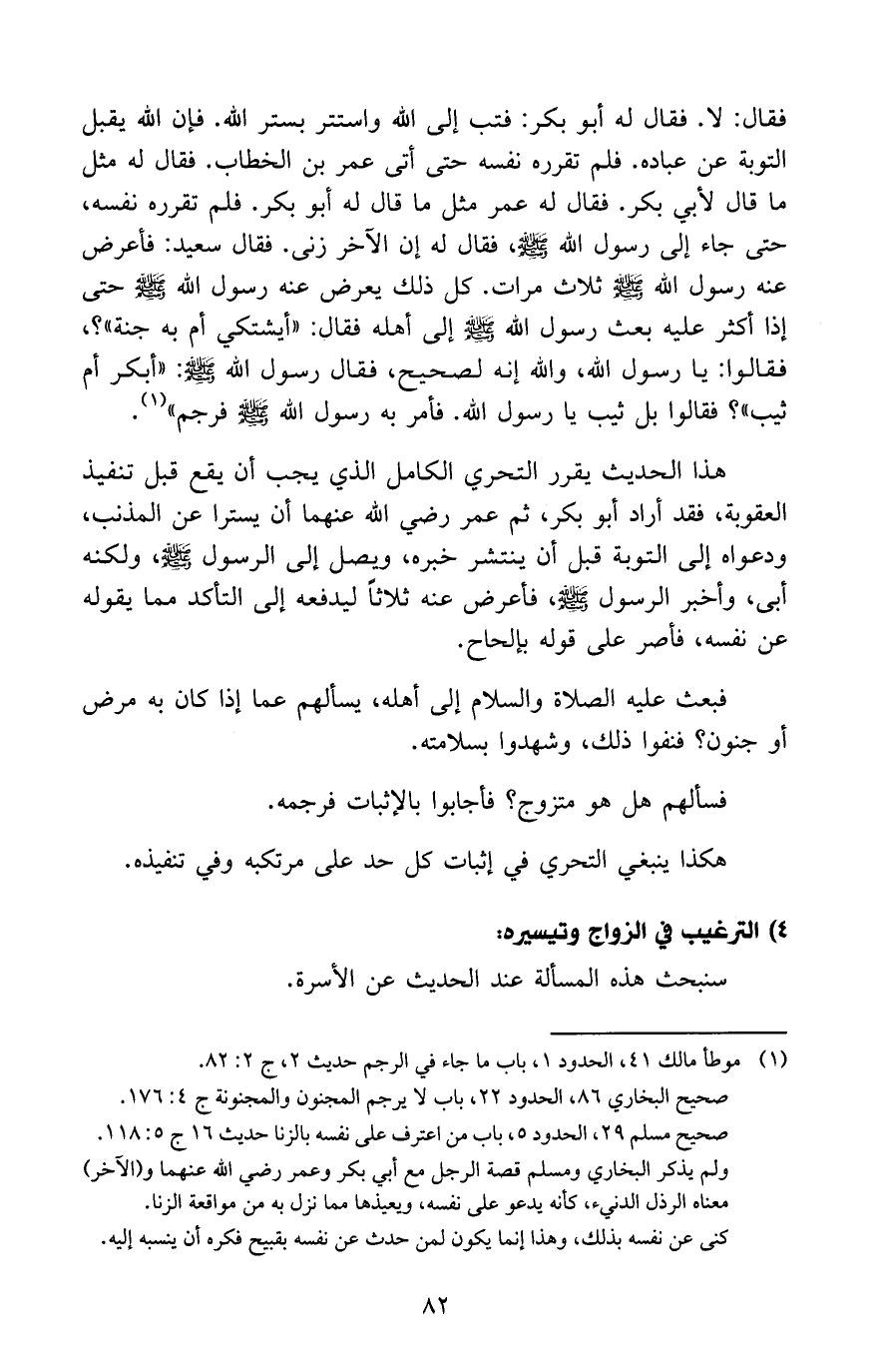 1 موطأ مالك 41، الحدود 1، باب ما جاء في الرجم حديث 2، ج 2: 82.