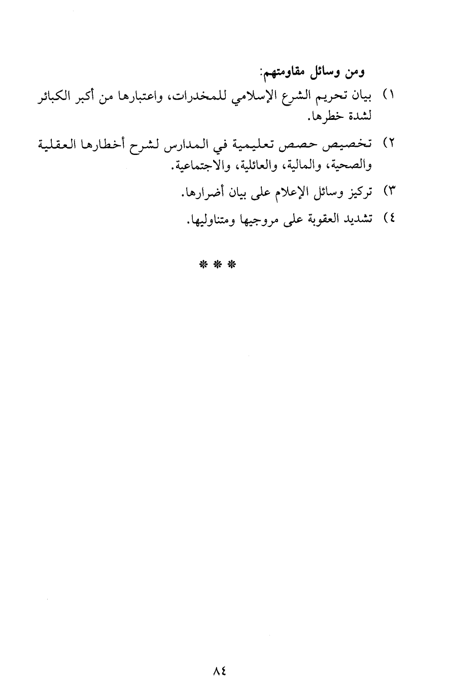 4) تشديد العقوبة على مروجيها ومتناوليها.