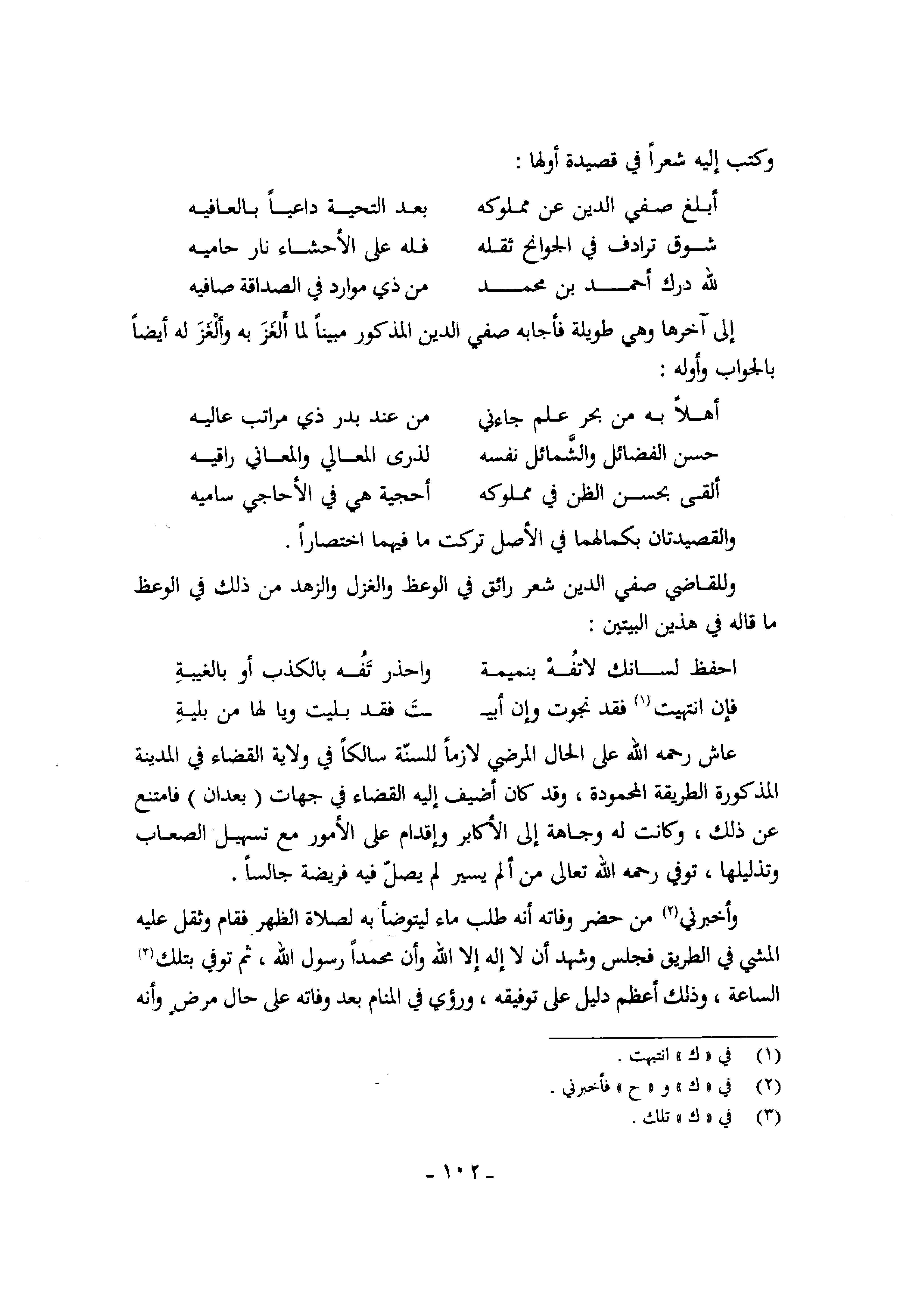 (أبلغ صفي الدّين عَن مَمْلُوكه ... بعد التَّحِيَّة دَاعيا بالعافيه)