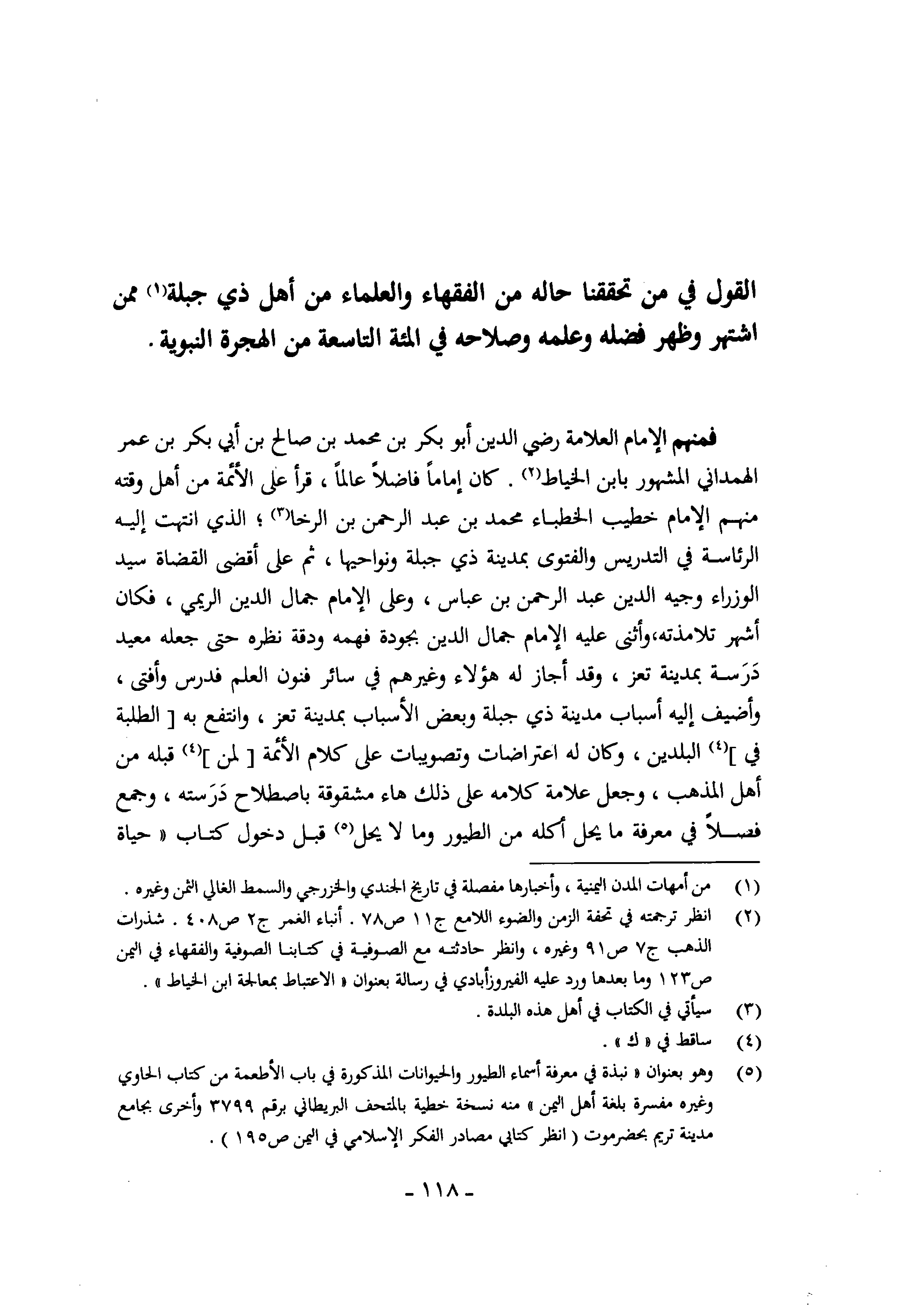 القَوْل فِي من تحققنا حَاله من الْفُقَهَاء وَالْعُلَمَاء من أهل ذِي جبلة مِمَّن اشْتهر وَظهر فَضله وَعلمه وصلاحه فِي المئة التَّاسِعَة من الْهِجْرَة النَّبَوِيَّة