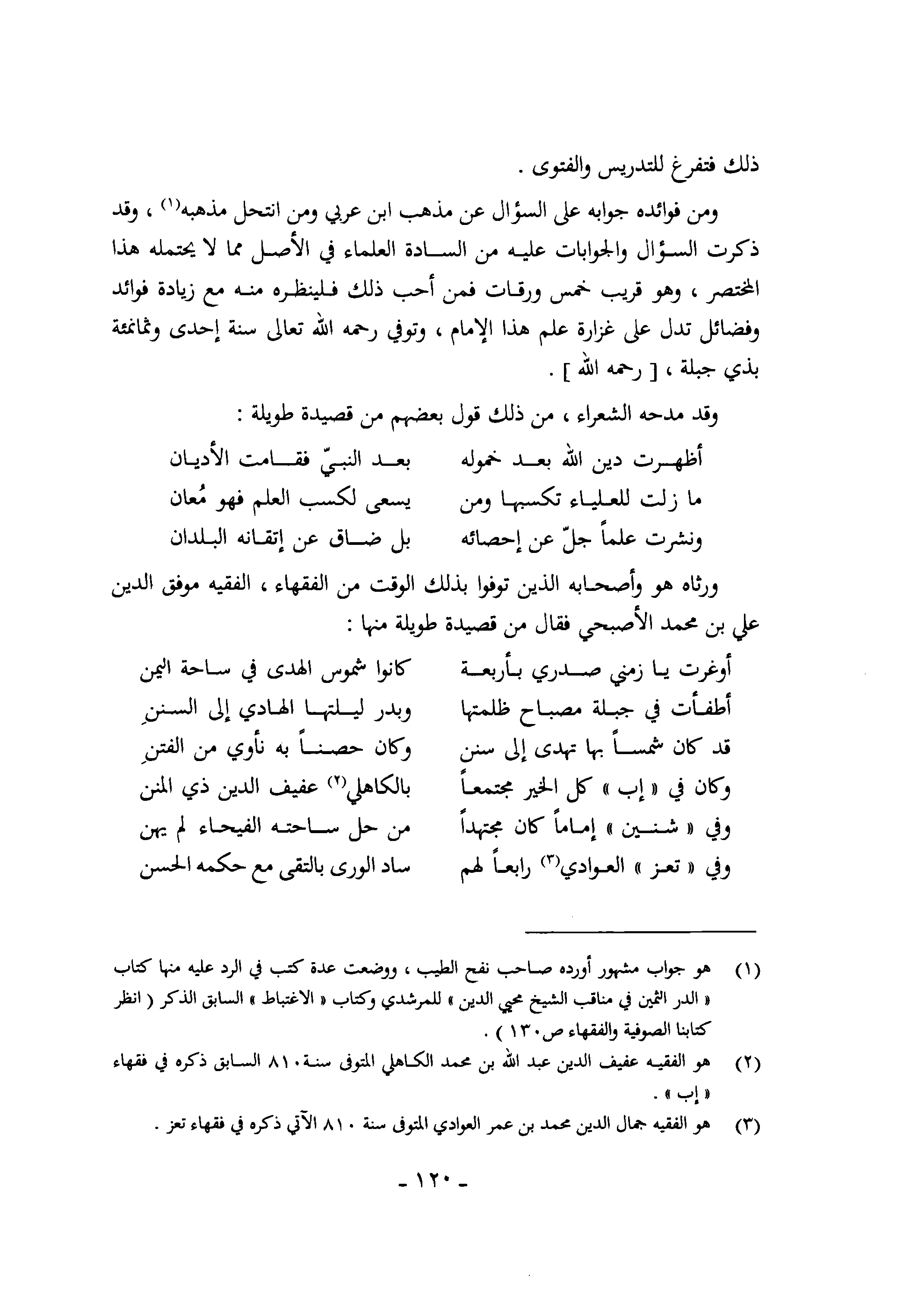 (وَكَانَ فِي إب كل الْخَيْر مجتمعا ... بالكاهلي عفيف الدّين ذِي المنن)
