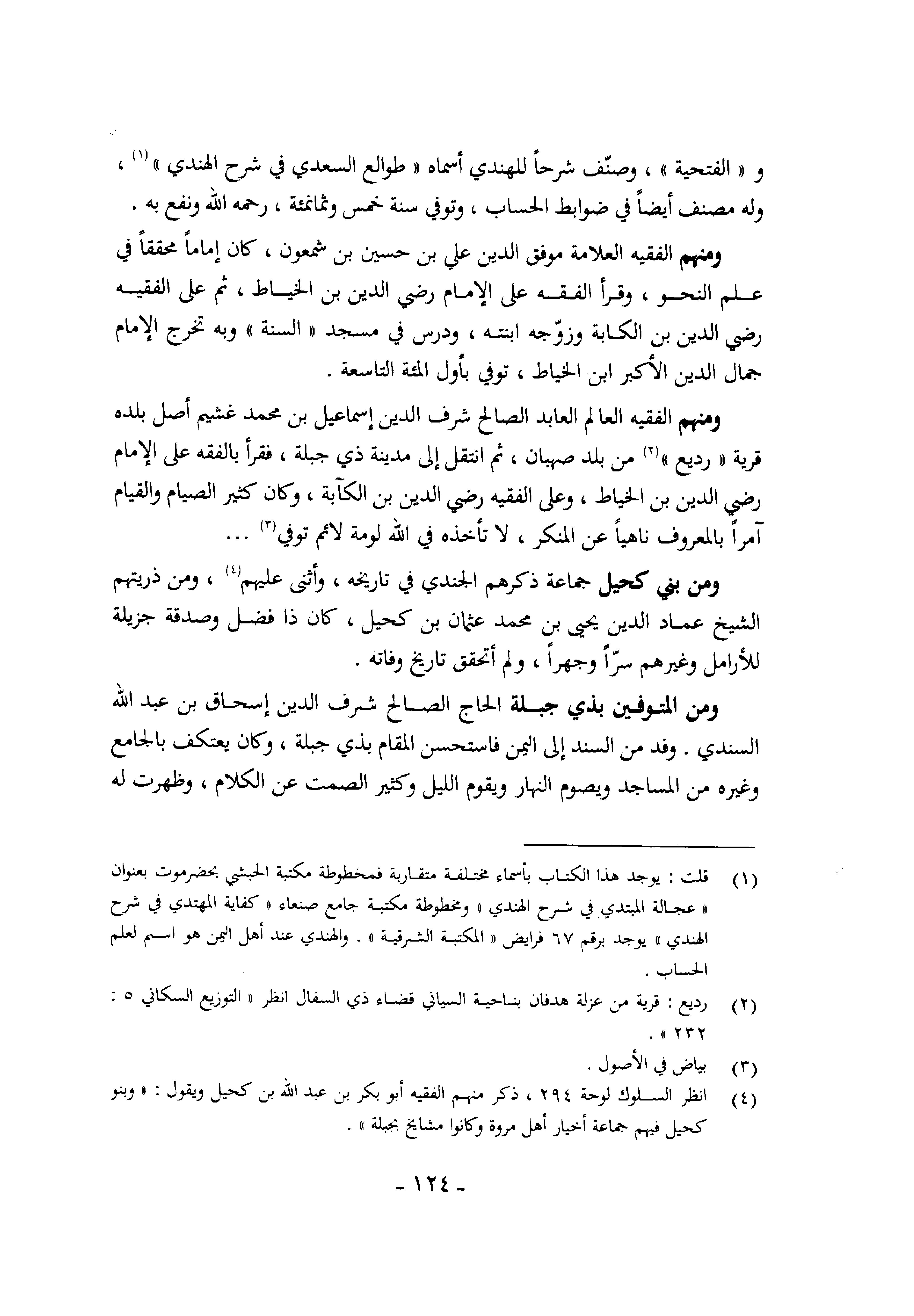 وَمن بني كحيل جمَاعَة ذكرهم الجندي فِي تَارِيخه وَأثْنى عَلَيْهِم وَمن ذُرِّيتهمْ الشَّيْخ عماد الدّين يحيى بن مُحَمَّد عُثْمَان بن كحيل كَانَ ذَا فضل وَصدقَة جزيلة للأرامل وَغَيرهم سرا وجهرا وَلم أتحقق تَارِيخ وَفَاته