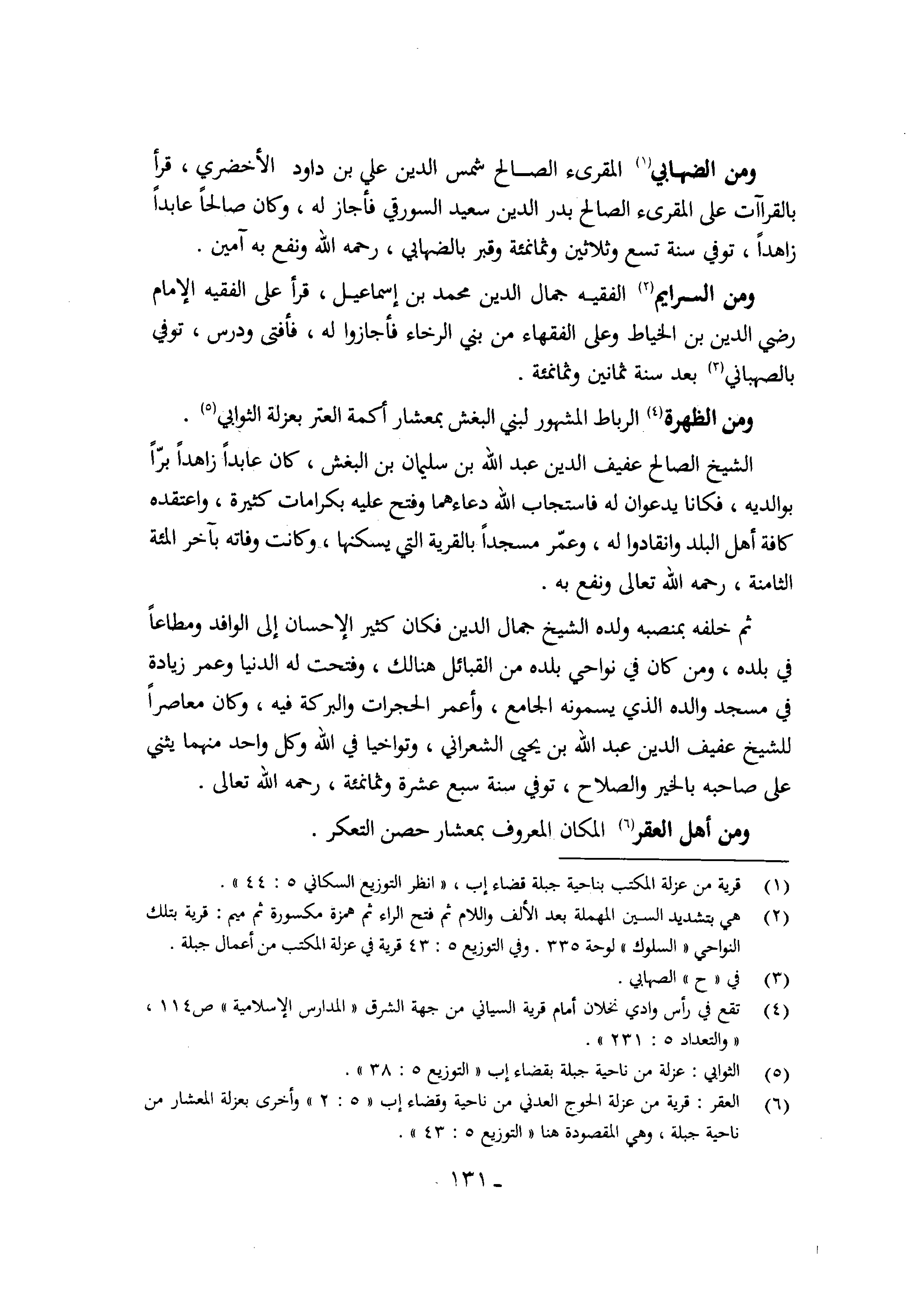 وَمن السرايم الْفَقِيه جمال الدّين مُحَمَّد بن إِسْمَاعِيل قَرَأَ على الْفَقِيه الإِمَام رَضِي الدّين بن الْخياط وعَلى الْفُقَهَاء من بني الرخَاء فأجازوا لَهُ فَأفْتى ودرس توفّي بالصهباني بعد سنة ثَمَانِينَ وثمانمئة