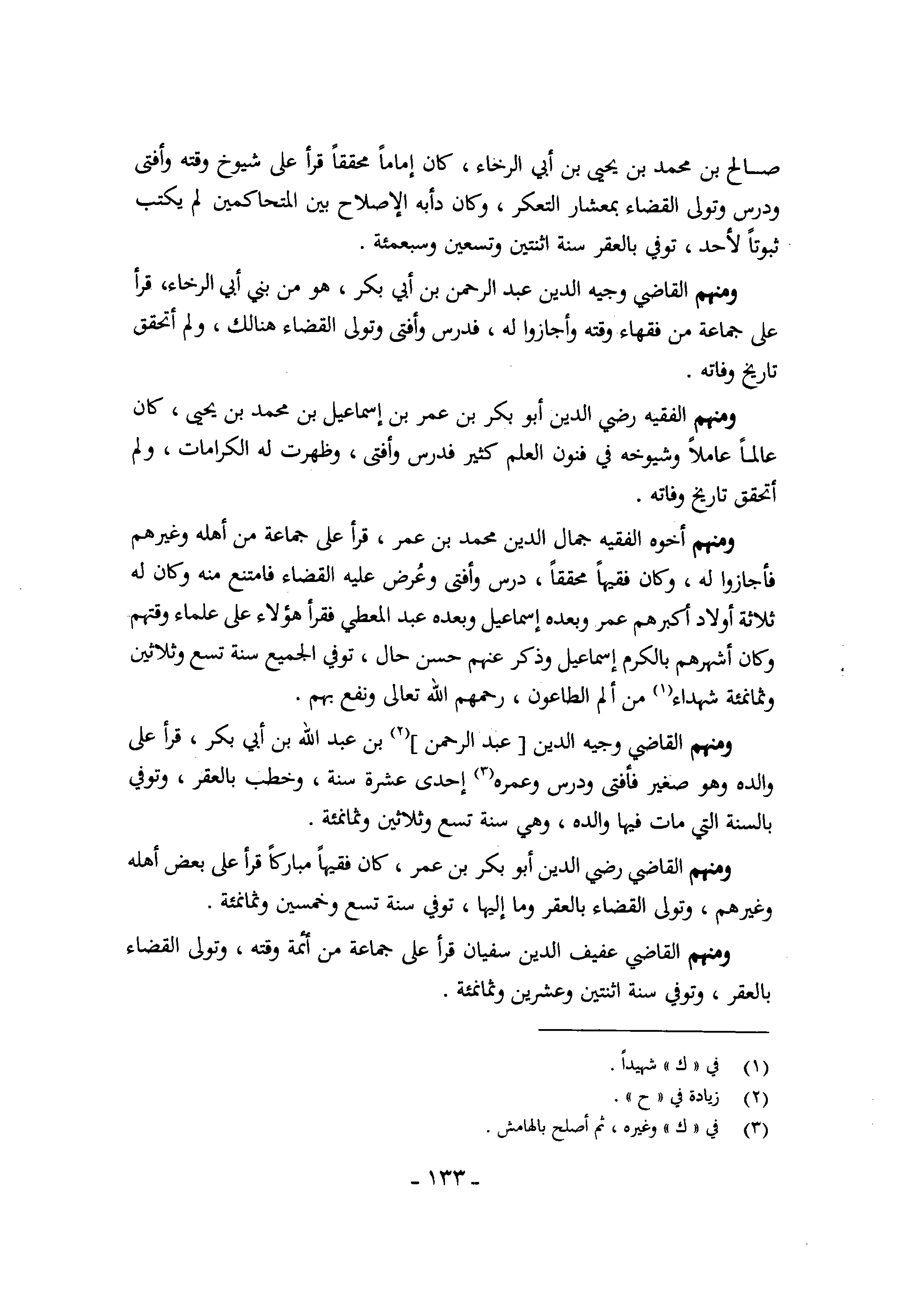 وَمِنْهُم القَاضِي رَضِي الدّين أَبُو بكر بن عمر كَانَ فَقِيها مُبَارَكًا قَرَأَ على بعض أَهله وَغَيرهم وَتَوَلَّى الْقَضَاء بالعقر وَمَا إِلَيْهَا توفّي سنة تسع وَخمسين وثمانمئة