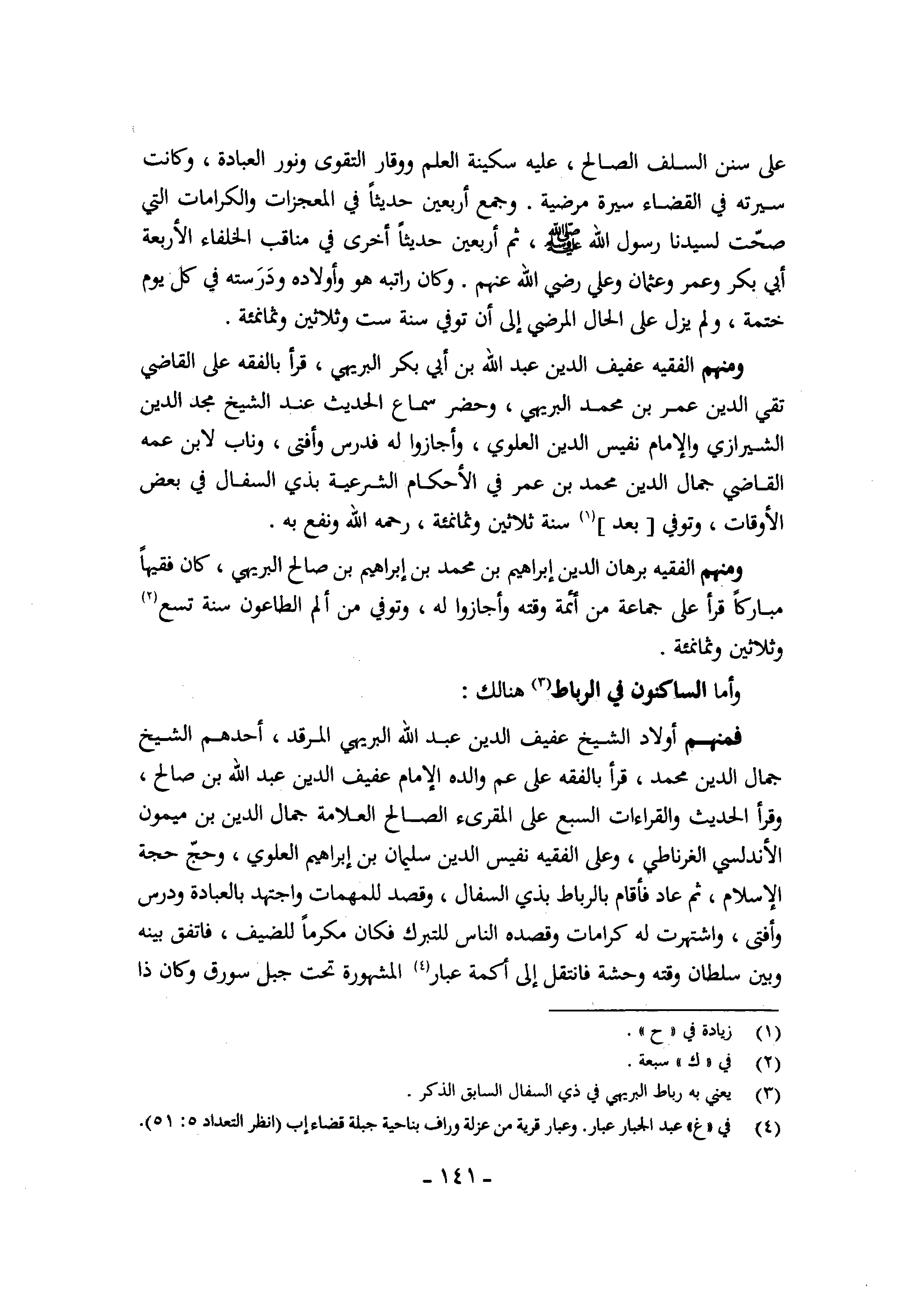 فَمنهمْ أَوْلَاد الشَّيْخ عفيف الدّين عبد الله البريهي المرقد أحدهم الشَّيْخ جمال الدّين مُحَمَّد قَرَأَ بالفقه على عَم وَالِده الإِمَام عفيف الدّين عبد الله بن صَالح وَقَرَأَ الحَدِيث والقراءات السَّبع على المقرىء الصَّالح الْعَلامَة جمال الدّين بن مَيْمُون الأندلسي الغرناطي وعَلى الْفَقِيه نَفِيس الدّين سُلَيْمَان بن إِبْرَاهِيم الْعلوِي وَحج حجَّة الْإِسْلَام ثمَّ عَاد فَأَقَامَ بالرباط بِذِي السفال وَقصد للمهمات واجتهد بِالْعبَادَة ودرس وَأفْتى واشتهرت لَهُ كرامات وقصده النَّاس للتبرك فَكَانَ مكرما للضيف فاتفق بَينه وَبَين سُلْطَان وقته وَحْشَة فانتقل إِلَى أكمة عبار الْمَشْهُورَة تَحت جبل سورق وَكَانَ ذَا
