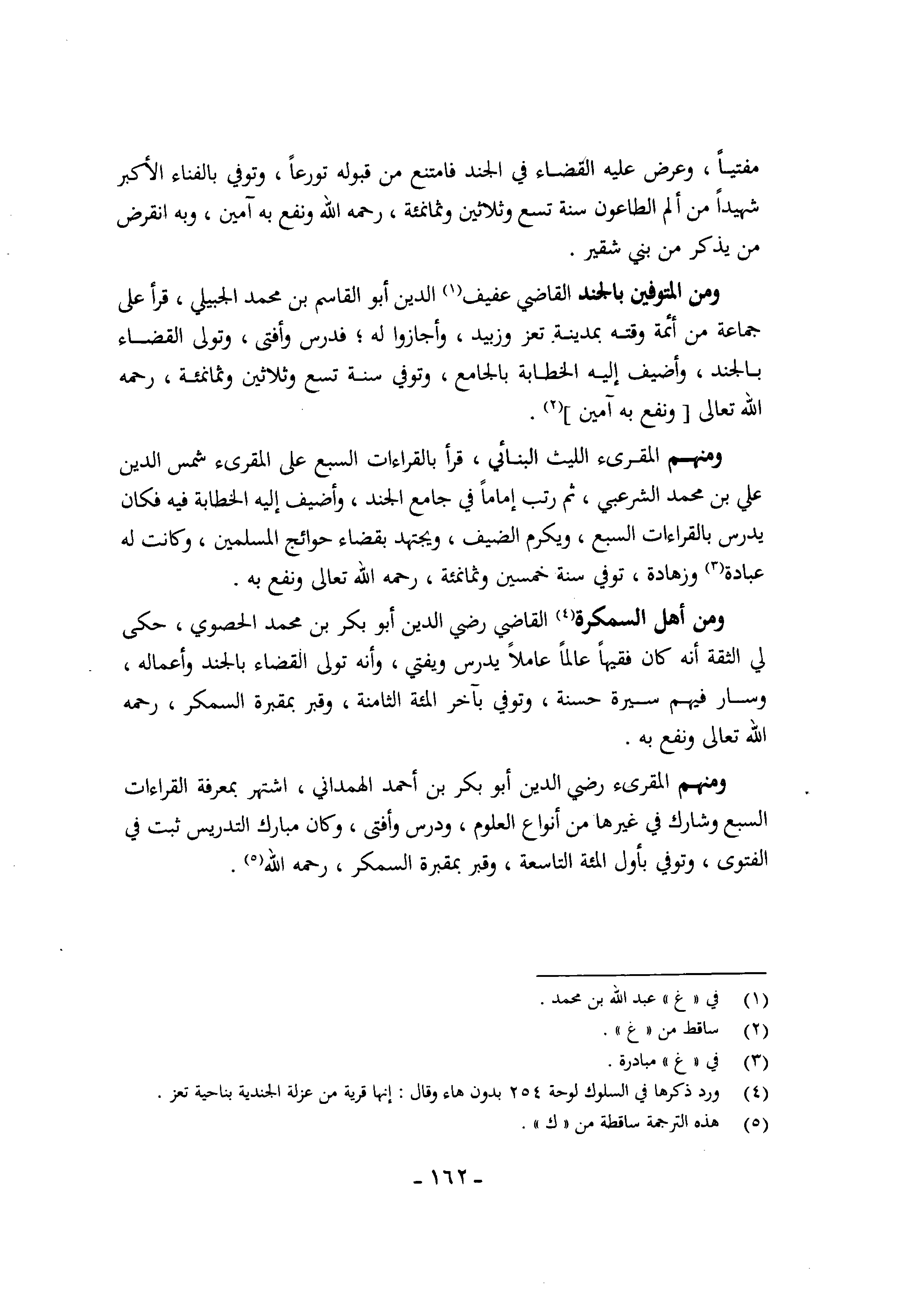 وَمن المتوفين بالجند القَاضِي عفيف الدّين أَبُو الْقَاسِم بن مُحَمَّد الجبيلي قَرَأَ على جمَاعَة من أَئِمَّة وقته بِمَدِينَة تعز وزبيد وأجازوا لَهُ فدرس وَأفْتى وَتَوَلَّى الْقَضَاء بالجند وأضيف إِلَيْهِ الخطابة بالجامع وَتُوفِّي سنة تسع وَثَلَاثِينَ وثمانمئة رَحمَه الله تَعَالَى ونفع بِهِ آمين