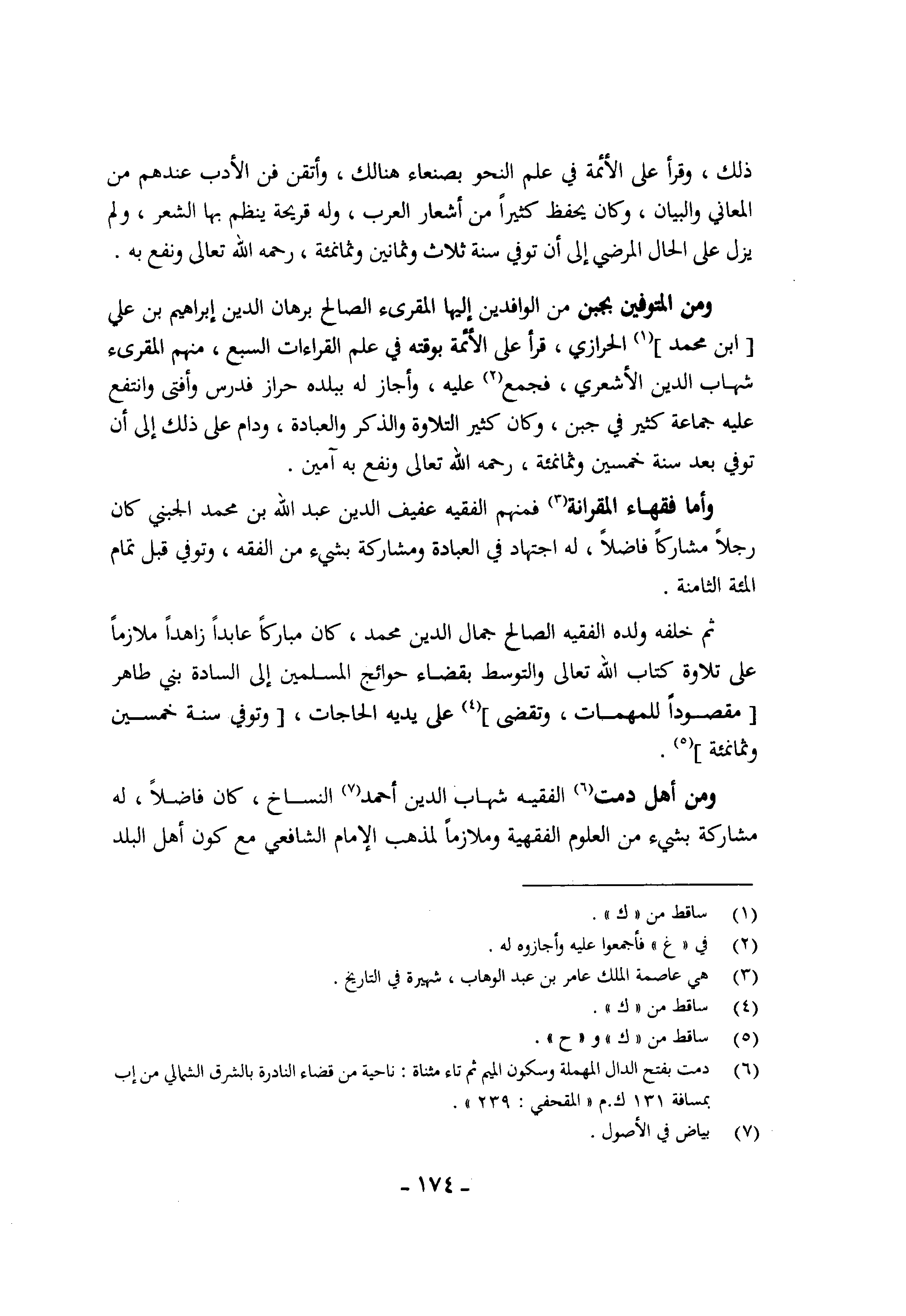 وَمن أهل دمت الْفَقِيه شهَاب الدّين أَحْمد النساخ كَانَ فَاضلا لَهُ مُشَاركَة بِشَيْء من الْعُلُوم الْفِقْهِيَّة وملازما لمَذْهَب الإِمَام الشَّافِعِي مَعَ كَون أهل الْبَلَد