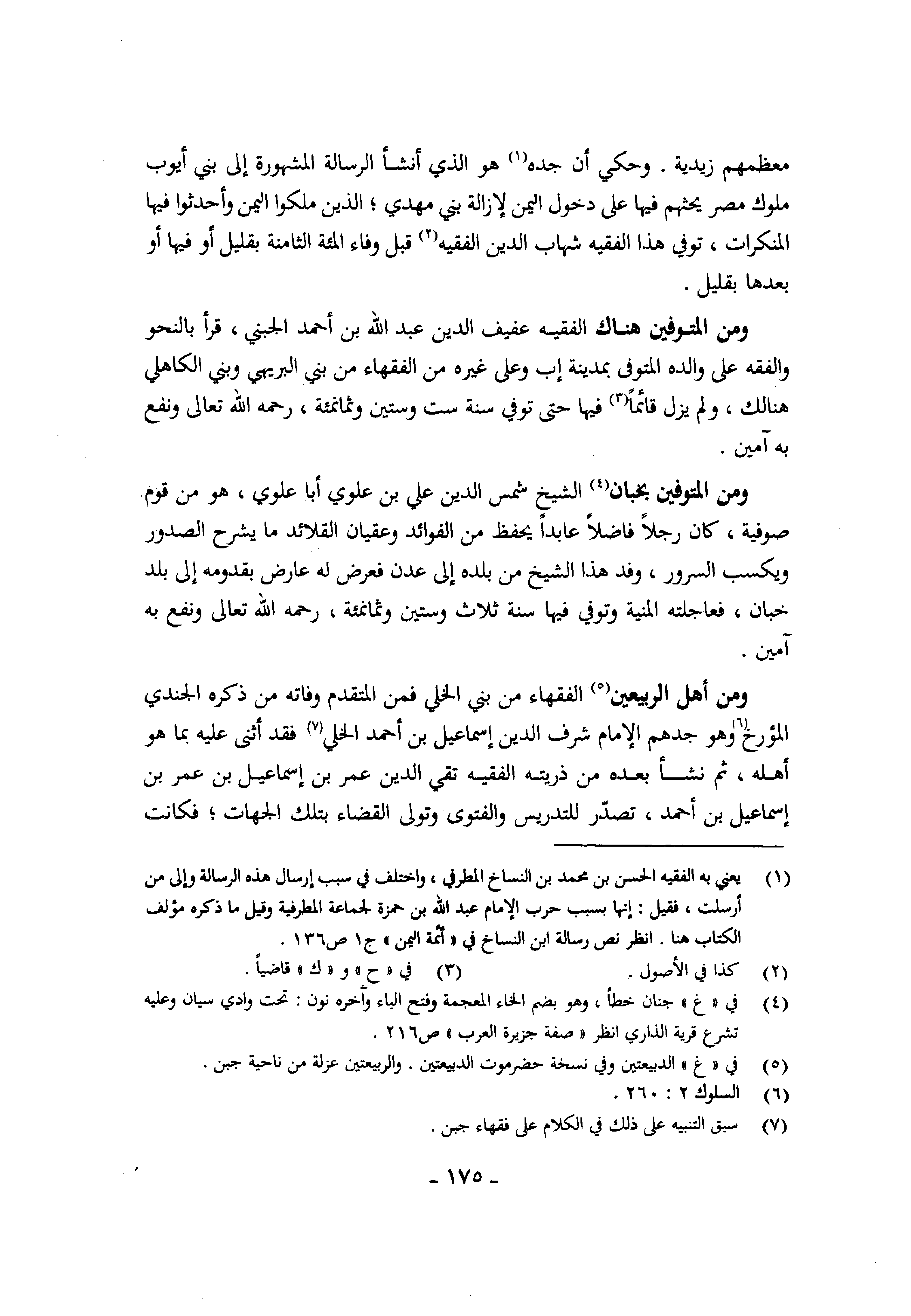 وَمن المتوفين هُنَاكَ الْفَقِيه عفيف الدّين عبد الله بن أَحْمد الجبني قَرَأَ بالنحو وَالْفِقْه على وَالِده الْمُتَوفَّى بِمَدِينَة إب وعَلى غَيره من الْفُقَهَاء من بني البريهي وَبني الْكَاهِلِي هُنَالك وَلم يزل قَائِما فِيهَا حَتَّى توفّي سنة سِتّ وَسِتِّينَ وثمانمئة رَحمَه الله تَعَالَى ونفع بِهِ آمين