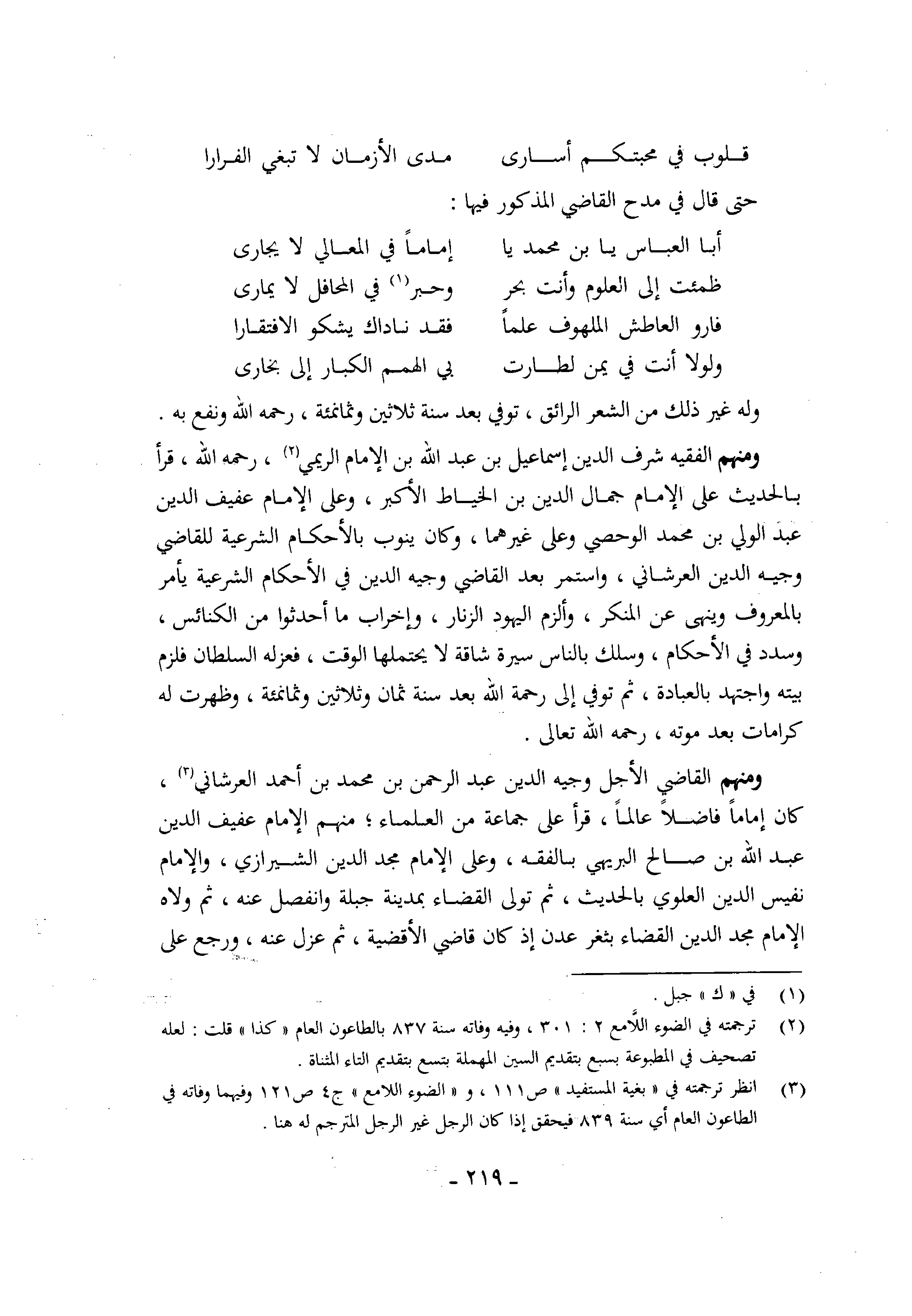 (قُلُوب فِي محبتكم أُسَارَى ... مدى الْأَزْمَان لَا تبغي الفرارا)