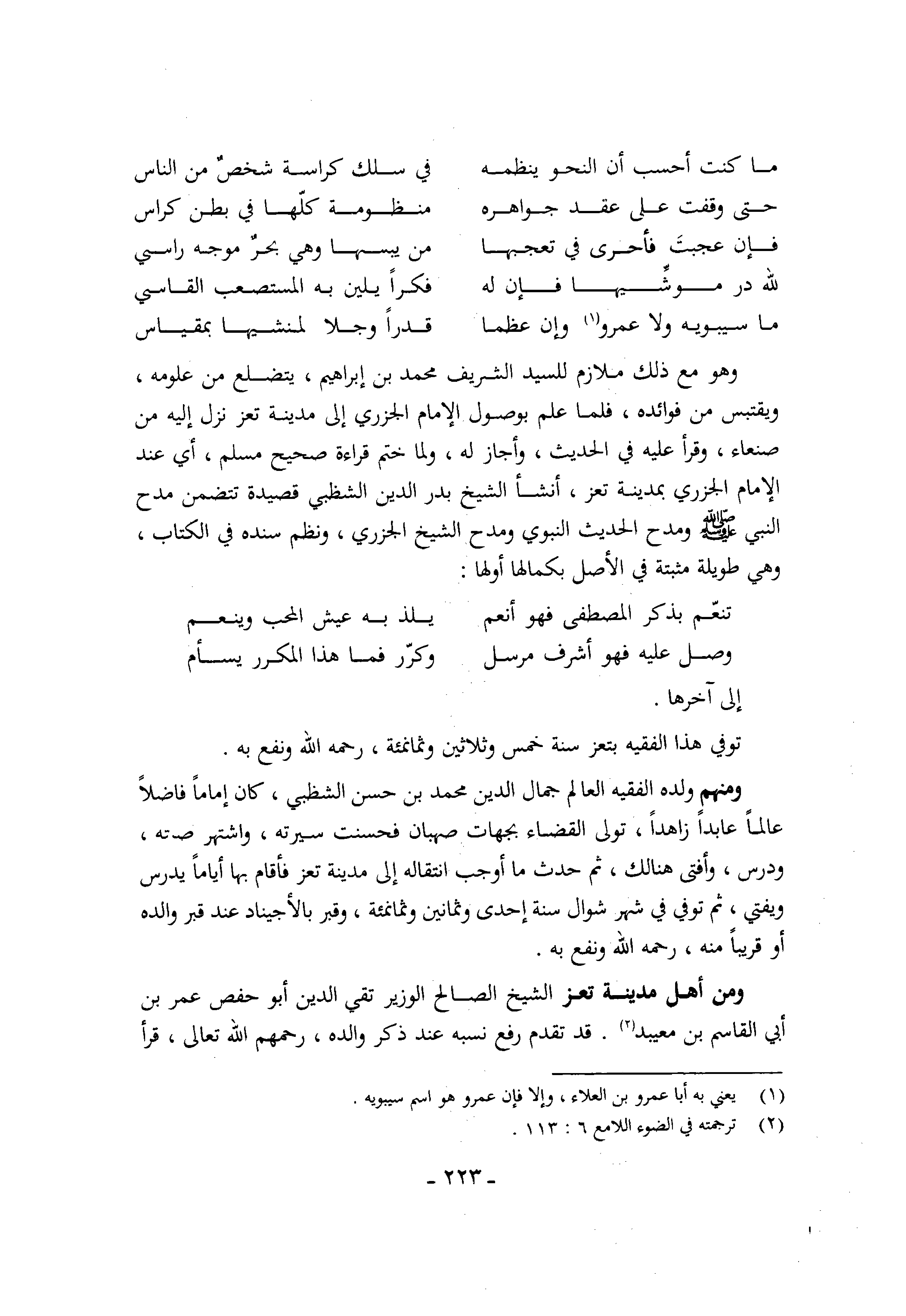 (مَا كنت أَحسب أَن النَّحْو ينظمه ... فِي سلك كراسة شخص من النَّاس)