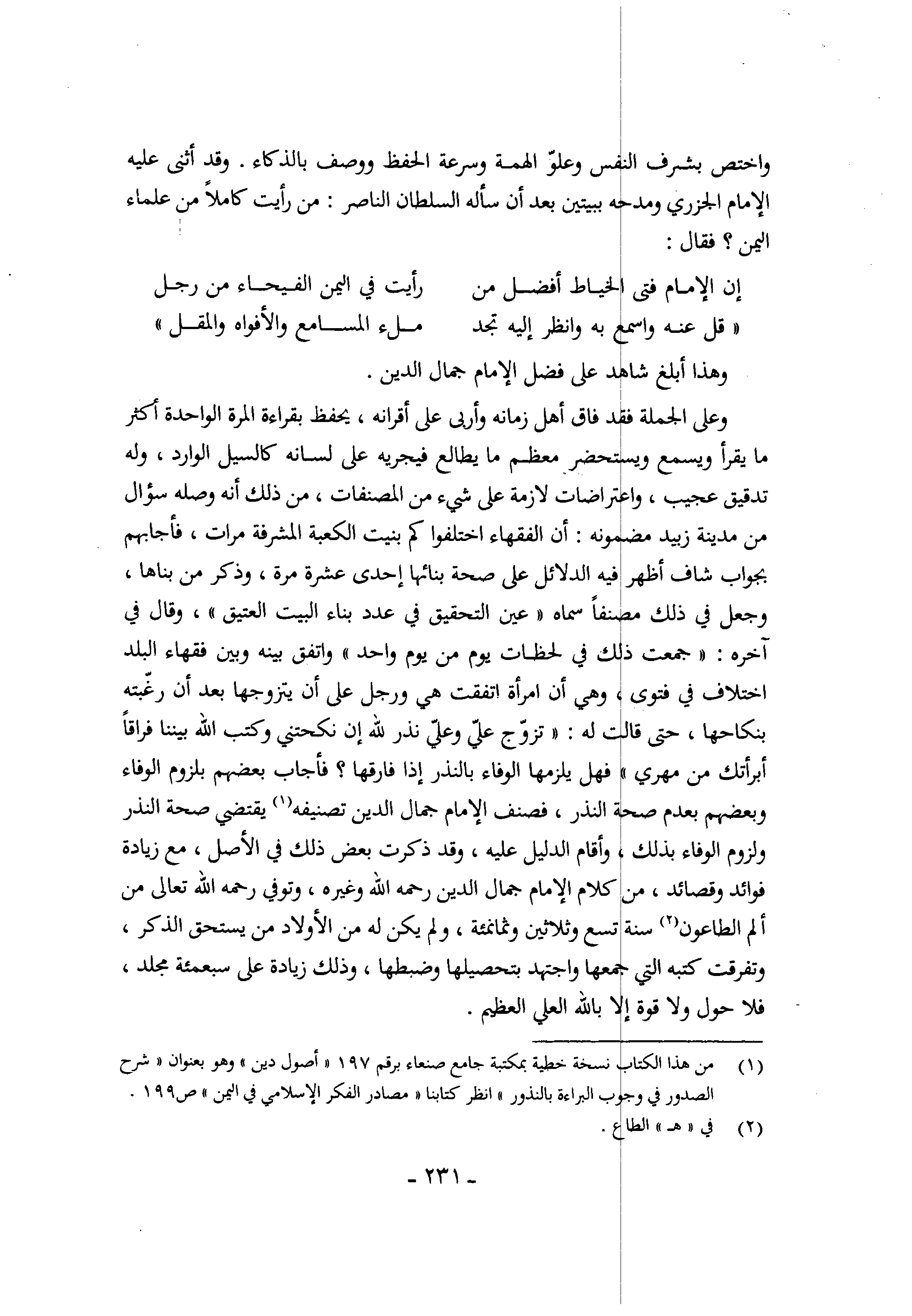 وَهَذَا أبلغ شَاهد على فضل الإِمَام جمال الدّين