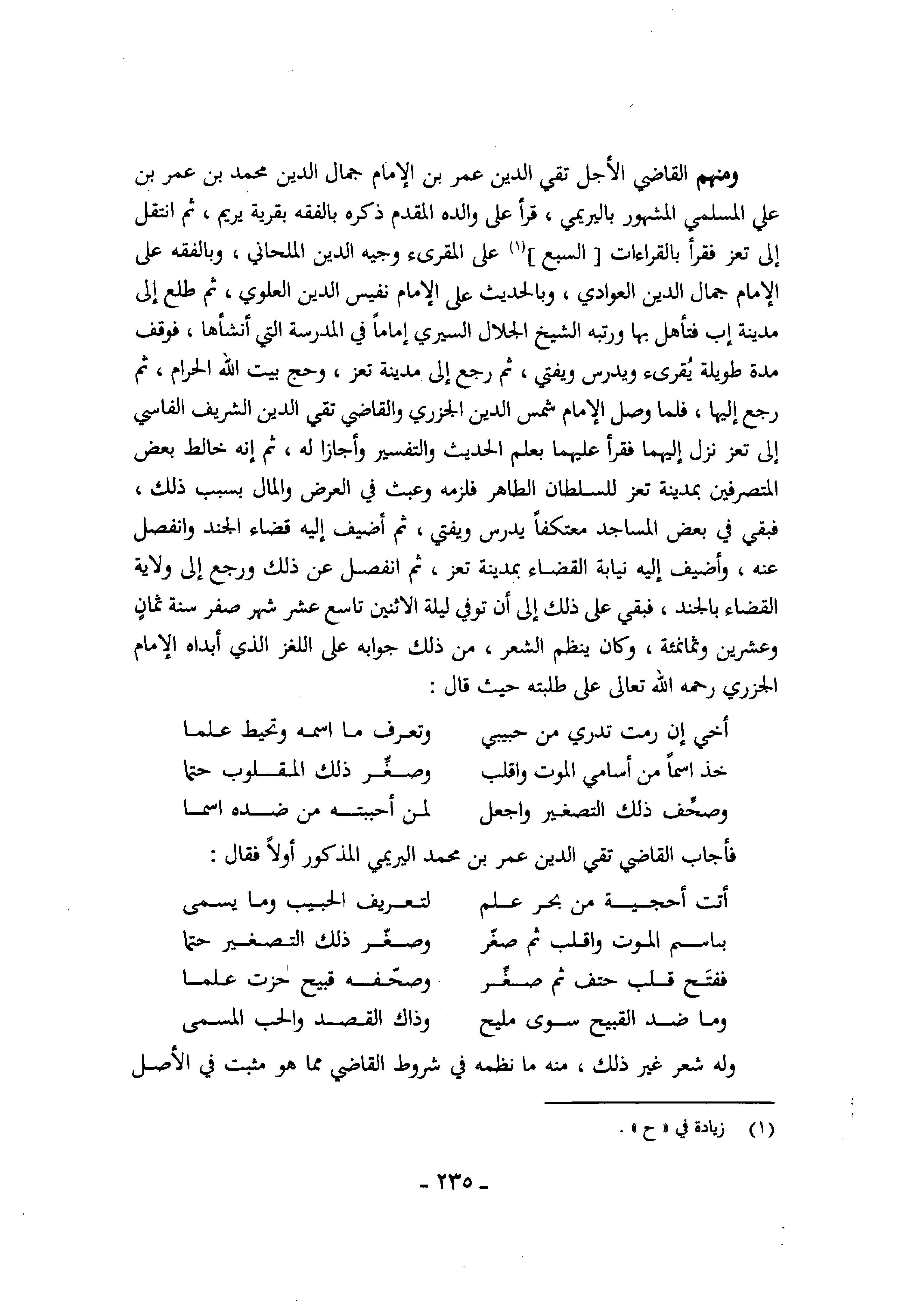 فَأجَاب القَاضِي تَقِيّ الدّين عمر بن مُحَمَّد اليريمي الْمَذْكُور أَولا فَقَالَ