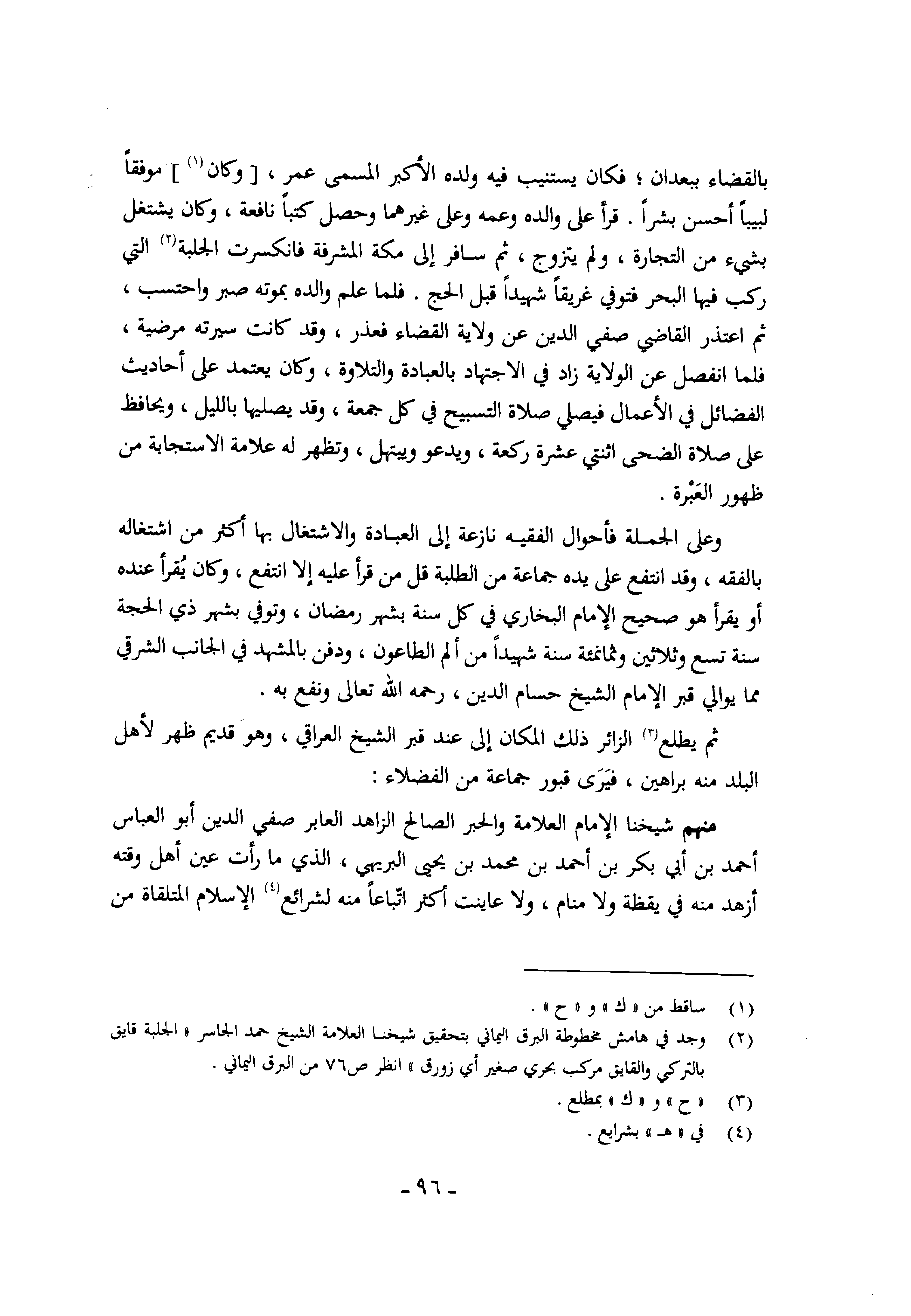 ثمَّ يطلع الزائر ذَلِك الْمَكَان إِلَى عِنْد قبر الشَّيْخ الْعِرَاقِيّ وَهُوَ قديم ظهر لأهل الْبَلَد مِنْهُ براهين فَيرى قُبُور جمَاعَة من الْفُضَلَاء مِنْهُم شَيخنَا الإِمَام الْعَلامَة والحبر الصَّالح الزَّاهِد العابر صفي الدّين أَبُو الْعَبَّاس أَحْمد بن أبي بكر بن أَحْمد بن مُحَمَّد بن يحيى البريهي الَّذِي مَا رَأَتْ عين أهل وقته أزهد مِنْهُ فِي يقظة وَلَا مَنَام وَلَا عَايَنت أَكثر اتبَاعا مِنْهُ لشرائع الْإِسْلَام المتلقاة من