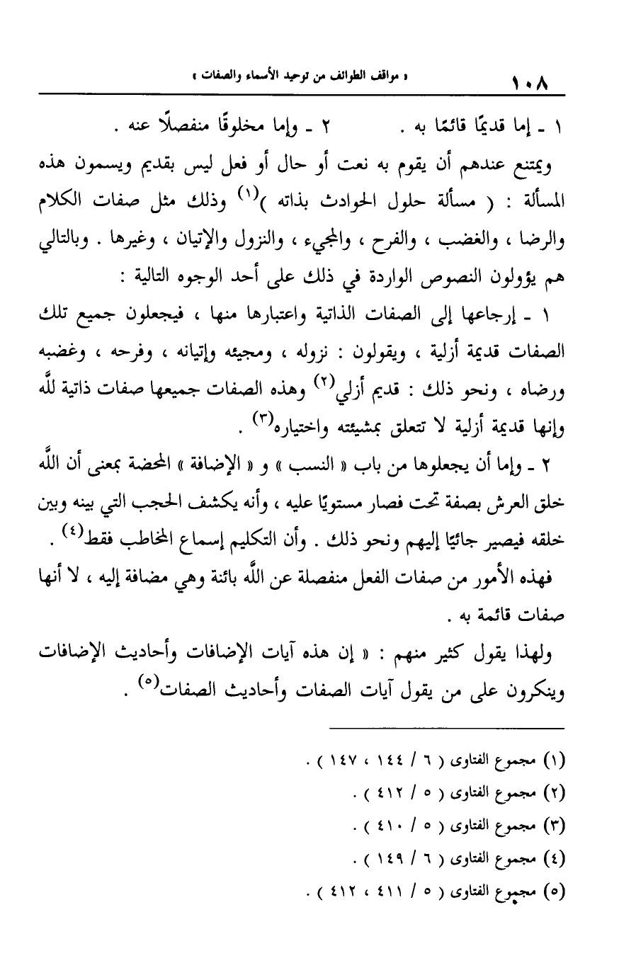 ولهذا يقول كثير منهم: "إن هذه آيات الإضافات وأحاديث الإضافات وينكرون على من يقول آيات الصفات وأحاديث الصفات5.