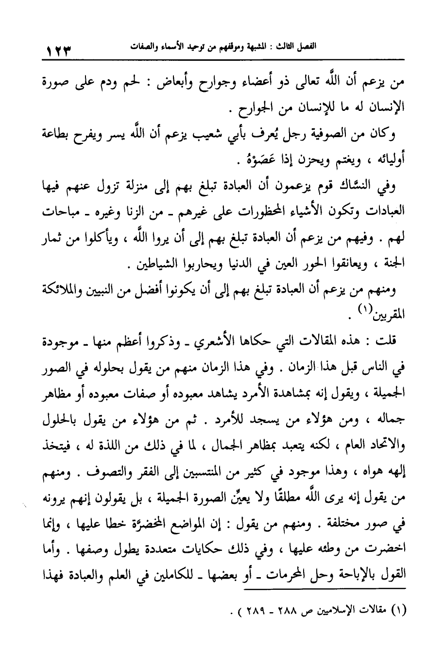1 مقالات الإسلاميين ص 288- 289)