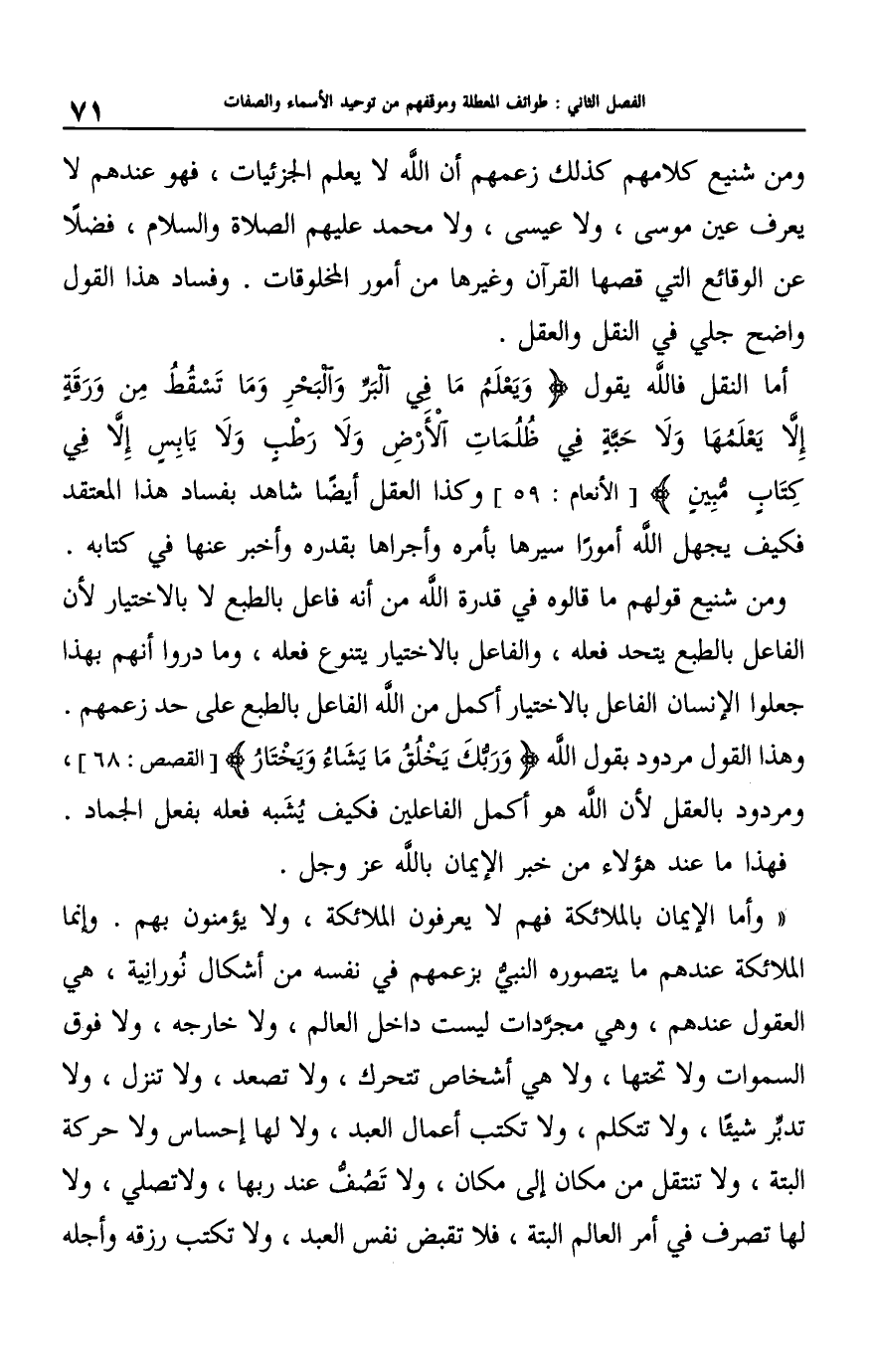 أما النقل فالله يقول: {وَيَعْلَمُ مَا فِي الْبَرِّ وَالْبَحْرِ وَمَا تَسْقُطُ مِنْ وَرَقَةٍ إِلاَّ يَعْلَمُهَا وَلا حَبَّةٍ فِي ظُلُمَاتِ الأَرْضِ وَلا رَطْبٍ وَلا يَابِسٍ إِلاََّ فِي كِتَابٍ مُبِينٍ} [الأنعام: 59] ، وكذا العقل أيضا شاهد بفساد هذا المعتقد فكيف يجهل الله أمورا سيرها بأمره وأجراها بقدره وأخبر عنها في كتابه.