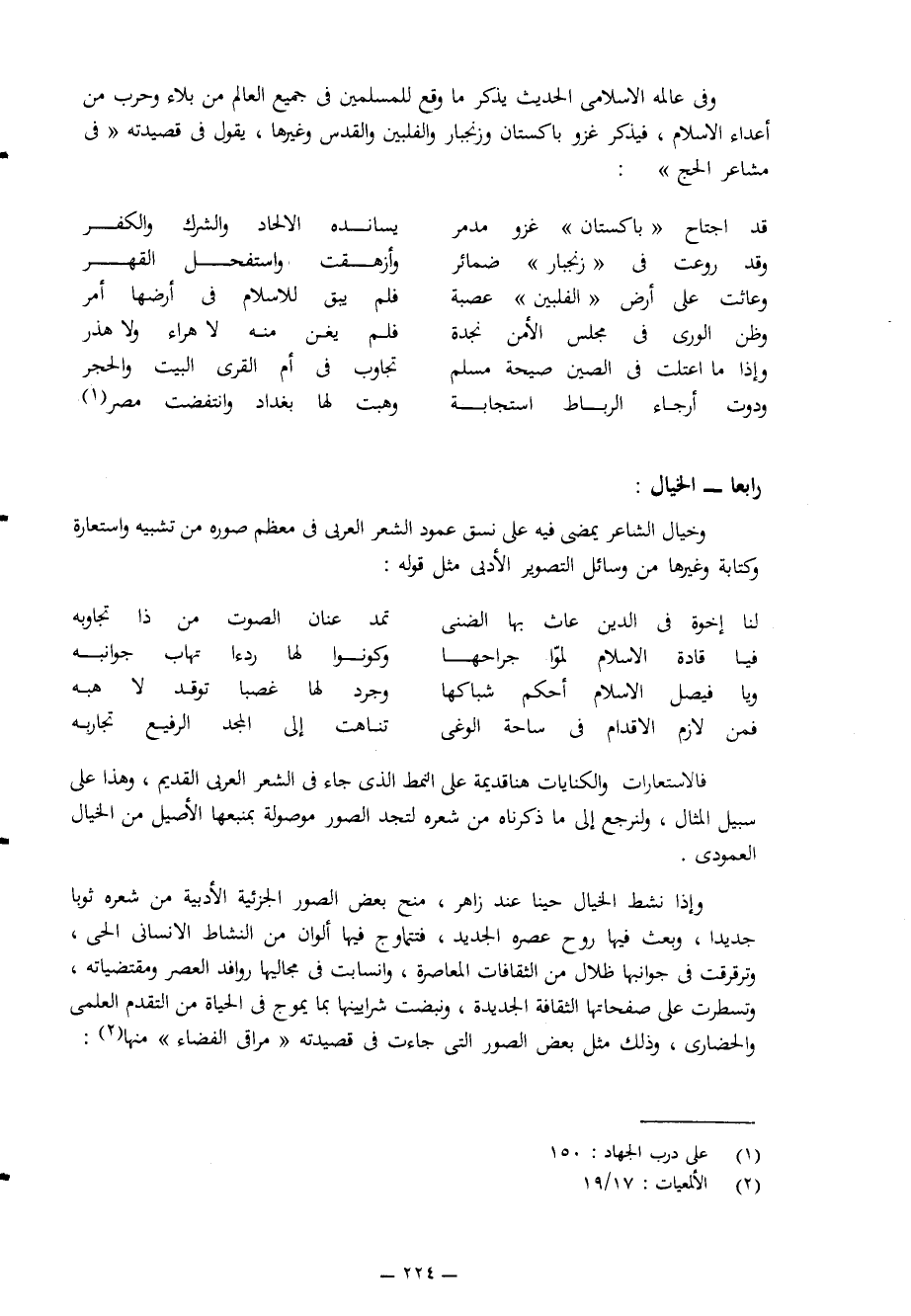 فالاستعارات والكنايات هنا قديمة على النمط الذي جاء في الشعر العربي القديم، وهذا على سبيل المثال، ولنرجع إلى ما ذكرناه من شعر لتجد الصور موصولة بمنبعها الأصيل من الخيال العمودي.