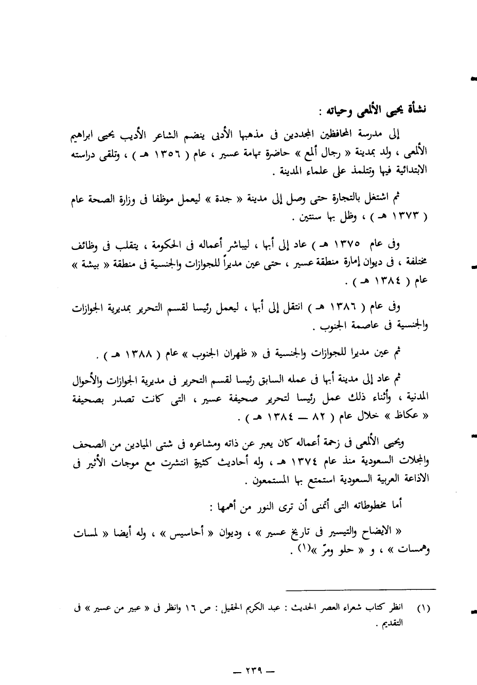 1 انظر كتاب شعراء العصر الحديث: عبد الكريم الحقيل، ص16، وانظر في "عبير من عسير" في التقديم.
