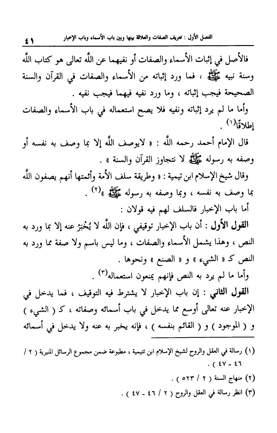 وقال شيخ الإسلام ابن تيمية: "وطريقة سلف الأمة وأئمتها أنهم يصفون الله بما وصف به نفسه، وبما وصفه به رسوله صلى الله عليه وسلم"2.