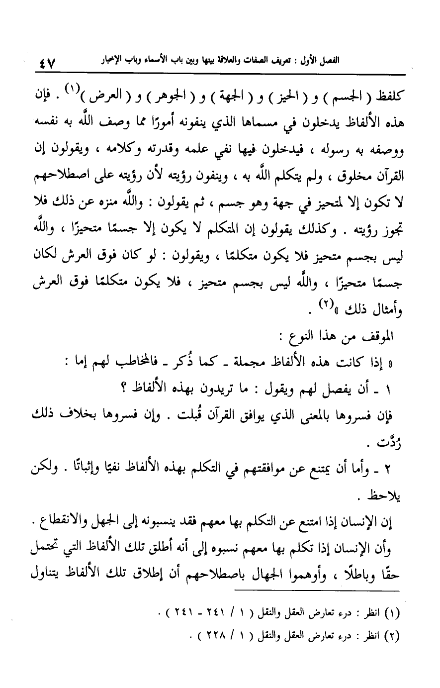 1 انظر: درء تعارض العقل والنقل (1/241-241) .