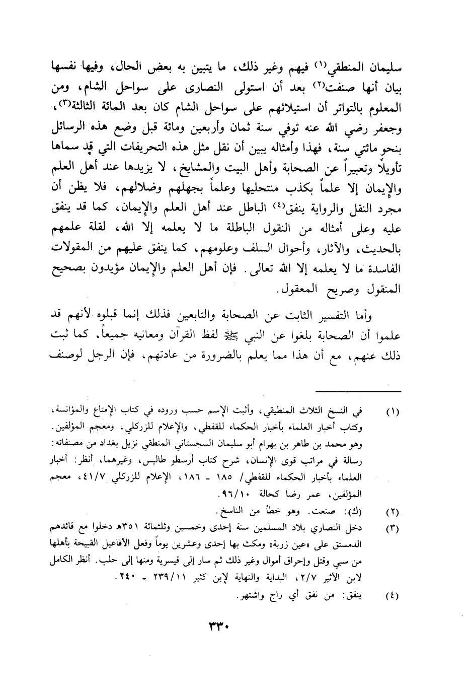 سليمان المنطقي فيهم وغير ذلك ما يتبين به بعض الحال وفيها نفسها بيان أنها صنفت بعد أن استولى النصارى على سواحل الشام ومن المعلوم بالتواتر أن استيلائهم على سواحل الشام كان بعد المائة الثالثة وجعفر رضي الله عنه توفي سنة ثمان وأربعين ومائة قبل وضع هذه الرسائل بنحو مائتي سنة فهذا وأمثاله يبين أن نقل مثل هذه التحريفات التي قد سماها تأويلا وتعبيرا عن الصحابة وأهل البيت والمشايخ لا يزيدها عند أهل العلم والإيمان إلا علما بكذب منتحليها وعلما بجهلهم وضلالهم فلا يظن أن مجرد النقل والرواية ينفق الباطل عند أهل العلم والإيمان كما قد ينفق عليه وعلى أمثاله من النقول الباطلة ما لا يعلمه إلا الله لقلة علمهم بالحديث والآثار وأحوال السلف وعلومهم كما ينفق عليهم من المقولات الفاسدة ما لا يعلمه إلا الله تعالى فإن أهل العلم والإيمان مؤيدون بصحيح المنقول وصريح المعقول.