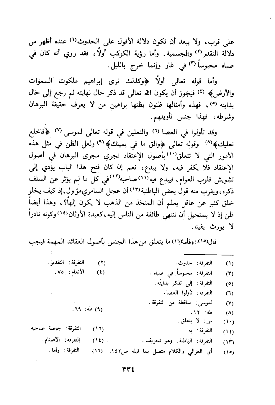 قال: "فأما ما يتعلق من هذا الجنس بأصول العقائد المهمة فيجب
