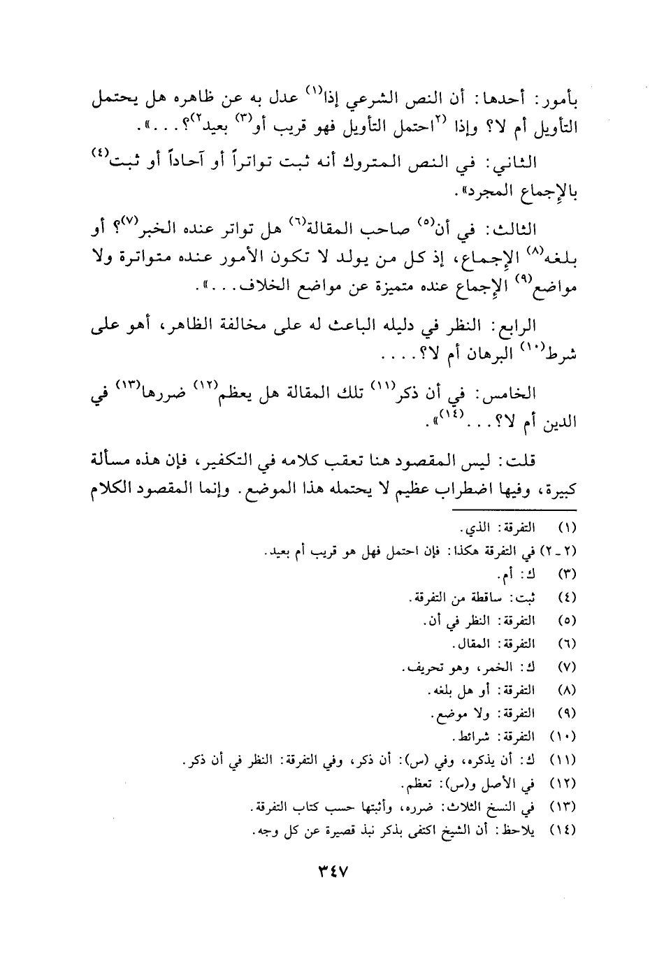 قلت: ليس المقصود هنا تعقب كلامه في التكفير فإن هذه مسألة كبيرة وفيها اضطراب عظيم لا يحتمله هذا الموضع وإنما المقصود الكلام