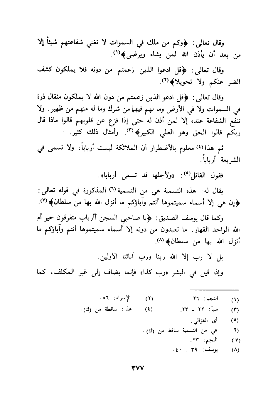 وكما قال يوسف الصديق: {يَا صَاحِبَيِ السِّجْنِ أَأَرْبَابٌ مُتَفَرِّقُونَ خَيْرٌ أَمِ اللَّهُ الْوَاحِدُ الْقَهَّارُ مَا تَعْبُدُونَ مِنْ دُونِهِ إِلاَّ أَسْمَاءً سَمَّيْتُمُوهَا أَنْتُمْ وَآبَاؤُكُمْ مَا أَنْزَلَ اللَّهُ بِهَا مِنْ سُلْطَانٍ} .