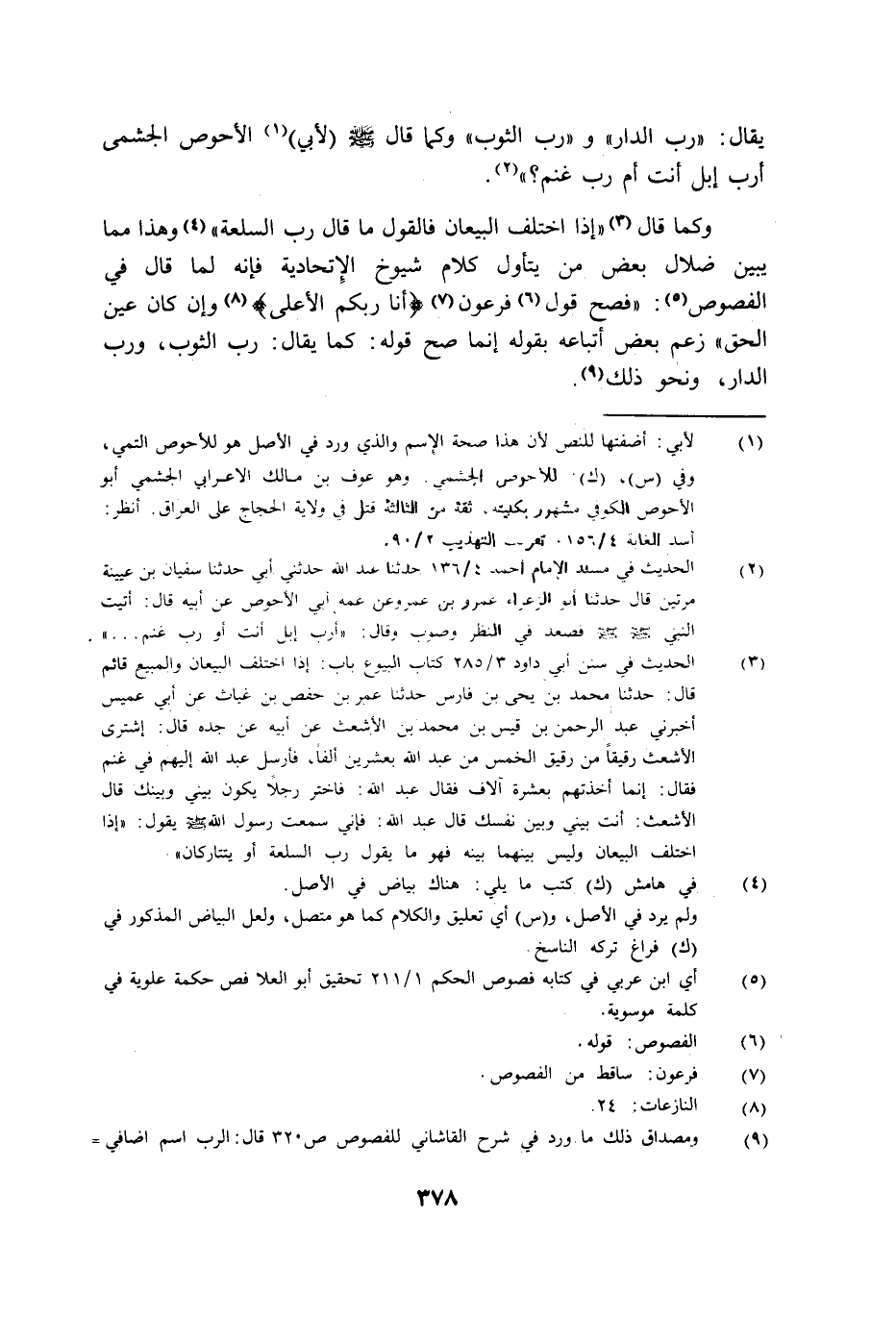 وكما قال: "إذا اختلف البيعان فالقول ما قال رب السلعة" وهذا مما يبين ضلال بعض من يتأول كلام شيوخ الإتحادية فإنه لما قال في الفصوص: "فصح قول فرعون: {أَنَا رَبُّكُمُ الأَعْلَى} وإن كان عين الحق" زعم بعض أتباعه بقوله إنما صح قوله كما يقال رب الثوب ورب الدار ونحو ذلك.