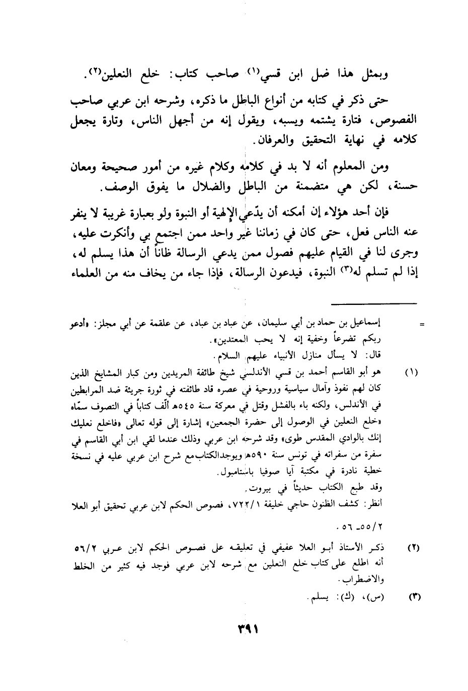 وبمثل هذا ضل ابن قسي صاحب كتاب خلع النعلين.