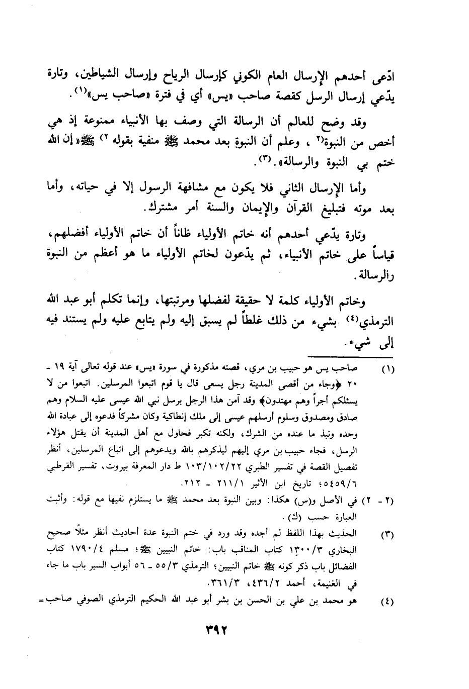 وقد وضح للعالم أن الرسالة التي وصف بها الأنبياء ممنوعة إذ هي أخص من النبوة وعلم أن النبوة بعد محمد صلى الله عليه وسلم منفية بقوله: "إن الله ختم بي النبوة والرسالة".