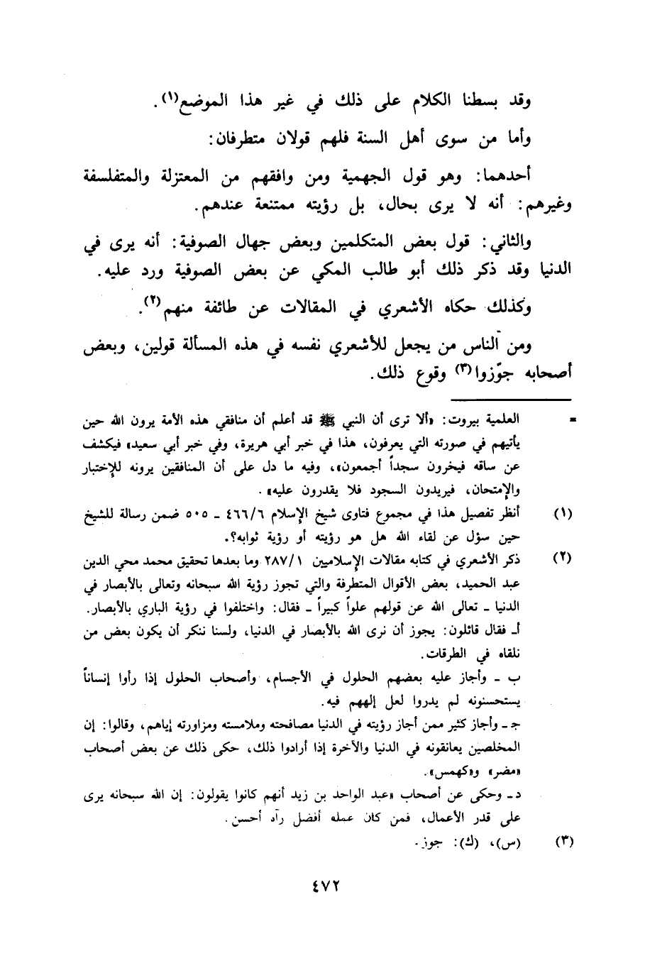 وكذلك حكاه الأشعري في المقالات عن طائفة منهم.