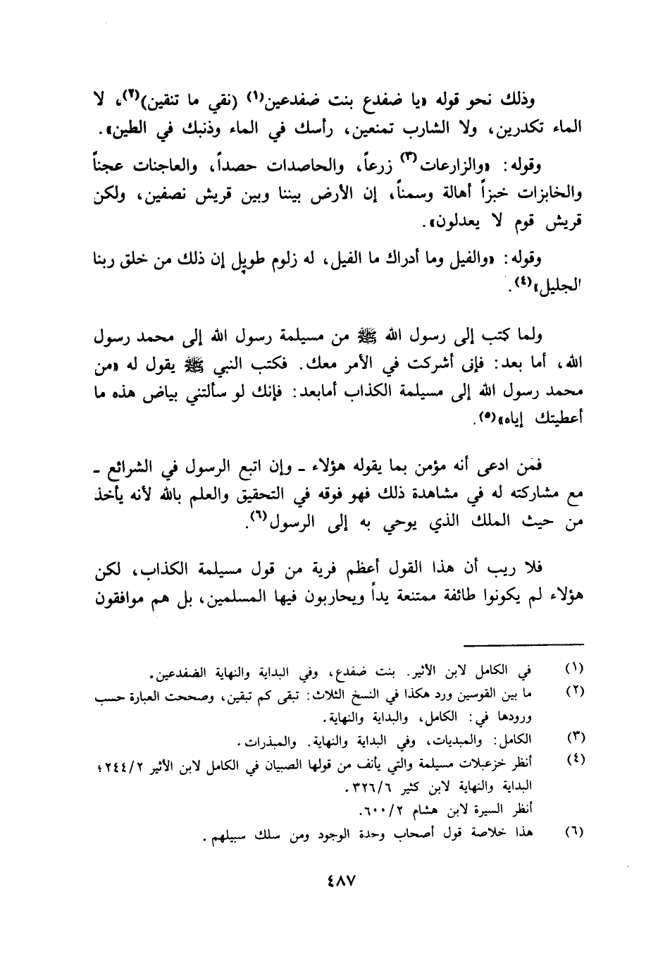 فلا ريب أن هذا القول أعظم فرية من قول مسيلمة الكذاب لكن هؤلاء لم يكونوا طائفة ممتنعة يدا ويحاربون فيها المسلمون بل هم موافقون