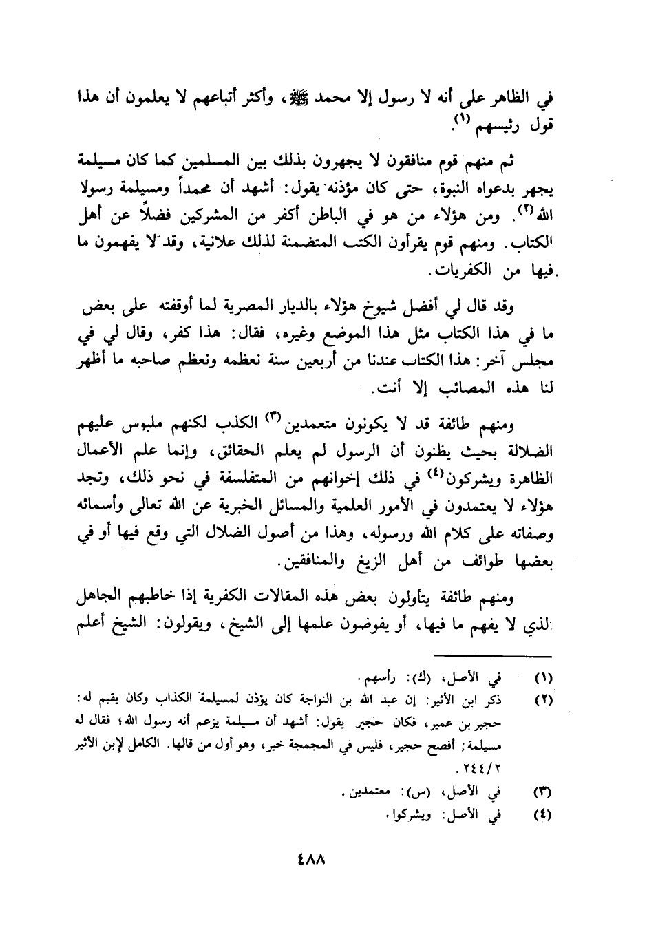 ثم منهم قوم منافقون لا يجهرون بذلك بين المسلمين كما كان مسيلمة يجهر بدعواه النبوة حتى كان مؤذنه يقول أشهد أن محمدا ومسيلمة رسولا الله ومن هؤلاء من هو في الباطن أكفر من المشركين فضلا عن أهل الكتاب ومنهم قوم يقرأون الكتب المتضمنة لذلك علانية وقد لا يفهمون ما فيها من الكفريات.