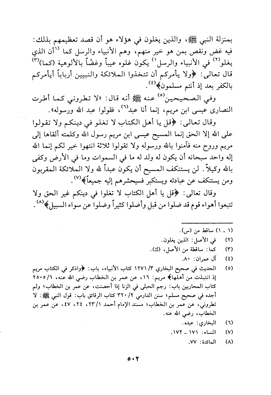 وقال تعالى: {قُلْ يَا أَهْلَ الْكِتَابِ لا تَغْلُوا فِي دِينِكُمْ غَيْرَ الْحَقِّ وَلا تَتَّبِعُوا أَهْوَاءَ قَوْمٍ قَدْ ضَلُّوا مِنْ قَبْلُ وَأَضَلُّوا كَثِيراً وَضَلُّوا عَنْ سَوَاءِ السَّبِيلِ} .