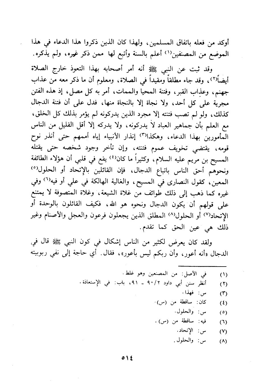 وقد ثبت عن النبي صلى الله عليه وسلم أنه أمر أصحابه بهذا التعوذ خارج الصلاة أيضا وقد جاء مطلقا ومقيدا في الصلاة ومعلوم أن ما ذكر معه من عذاب جهنم وعذاب القبر وفتنة المحيا والممات أمر به كل مصل إذ هذه الفتن مجرية على كل أحد ولا نجاة إلا بالنجاة منها فدل على أن فتنة الدجال كذلك ولو لم تصب فتنته إلا مجرد الذين يدركونه لم يؤمر بذلك كل الخلق مع العلم بأن جماهير العباد لا يدركونه ولا يدركه إلا أقل القليل من الناس المأمورين بهذا الدعاء وهكذا إنذار الأنبياء إياه أممهم حتى أنذر نوح قومه يقتضي تخويف عموم فتنته وإن تأخر وجود شخصه حتى يقتله المسيح بن مريم عليه السلام وكثيرا ما كان يقع في قلبي أن هؤلاء الطائفة ونحوهم أحق الناس باتباع الدجال فإن القائلين بالإتحاد أو الحلول المعين كقول النصارى في المسيح والغالية الهالكة في علي أوفيه وفي غيره كما ذهب إلى ذلك طوائف من غلاة الشيعة وغلاة المتصوفة لا يمتنع على قولهم أن يكون الدجال ونحوه هو الله فكيف القائلون بالوحدة أو الإتحاد أو الحلول المطلق الذين يجعلون فرعون والعجل والأصنام وغير ذلك هي عين الحق كما تقدم.