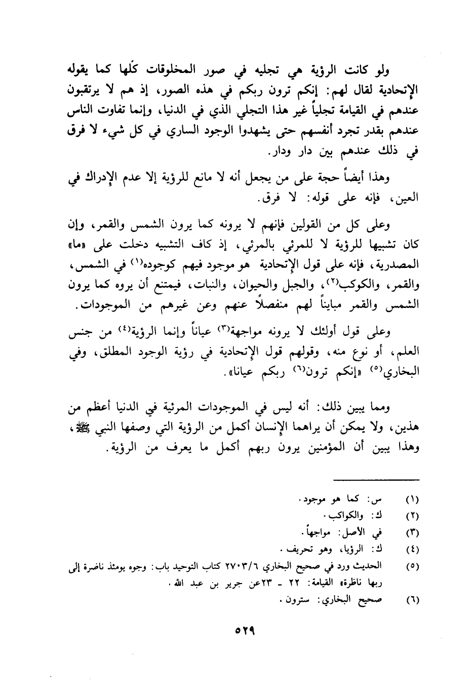 وعلى قول أولئك لا يرونه مواجهة عيانا وإنما الرؤية من جنس العلم أو نوع منه وقولهم قول الإتحادية في رؤية الوجود المطلق وفي البخاري: "إنكم ترون ربكم عيانا".