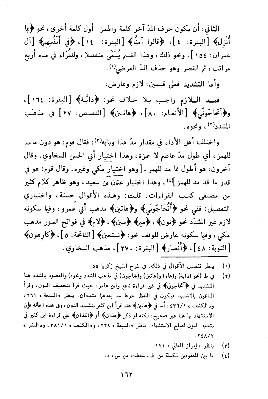 وهذا القسم يسمى منفصلاً، وللقراء في مده أربع مراتب، ثم القصر، وهو حذف المد العرضي.