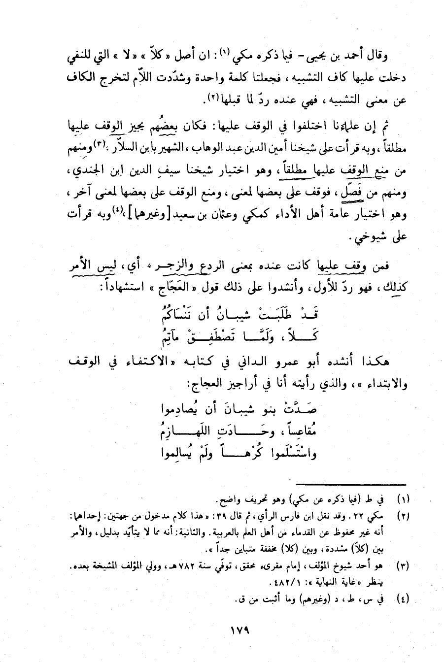 فمن وقف عليها كلها كانت عنده بمعنى الردع والزجر، أي ليس الأمر كذلك، فهو رد للأول، وأنشدوا على ذلك قول العجاج إستشهاداً: