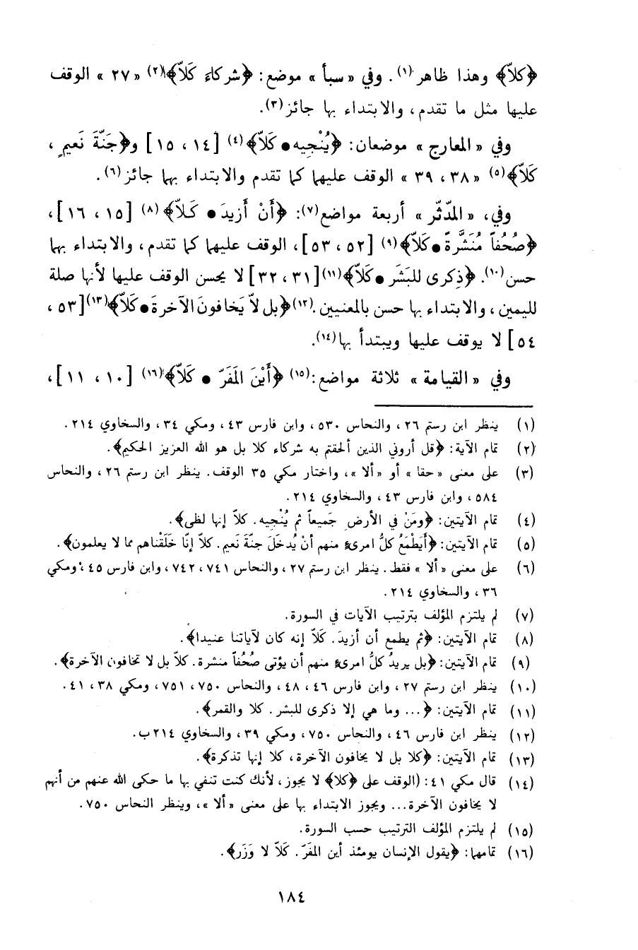 وفي المدثر أربعة مواضع {أن أزيد * كلا} ، {صحفا منشرة * كلا} الوقف عليهما كما تقدم، والابتداء بهما حسن.