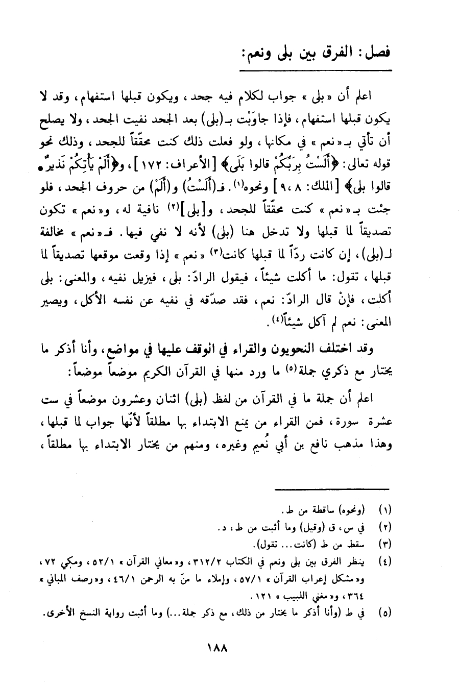فصل الفرق بين بلى ونعم