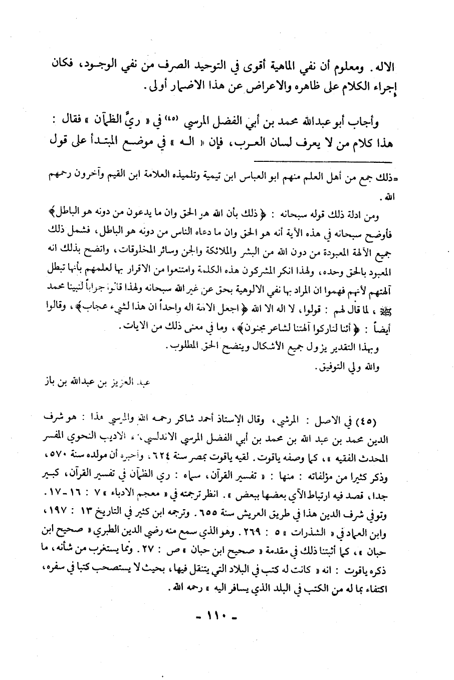 وَأَجَابَ أَبُو عَبْدِ اللَّهِ مُحَمَّدُ بْنُ أَبِي الْفَضْلِ الْمُرْسِيُّ1 فِي "رَيِّ الظَّمْآنِ" فَقَالَ: هَذَا كَلَامُ مَنْ لَا يَعْرِفُ لِسَانَ الْعَرَبِ، فَإِنَّ "إِلَهَ" فِي مَوْضِعِ الْمُبْتَدَأِ عَلَى قَوْلِ