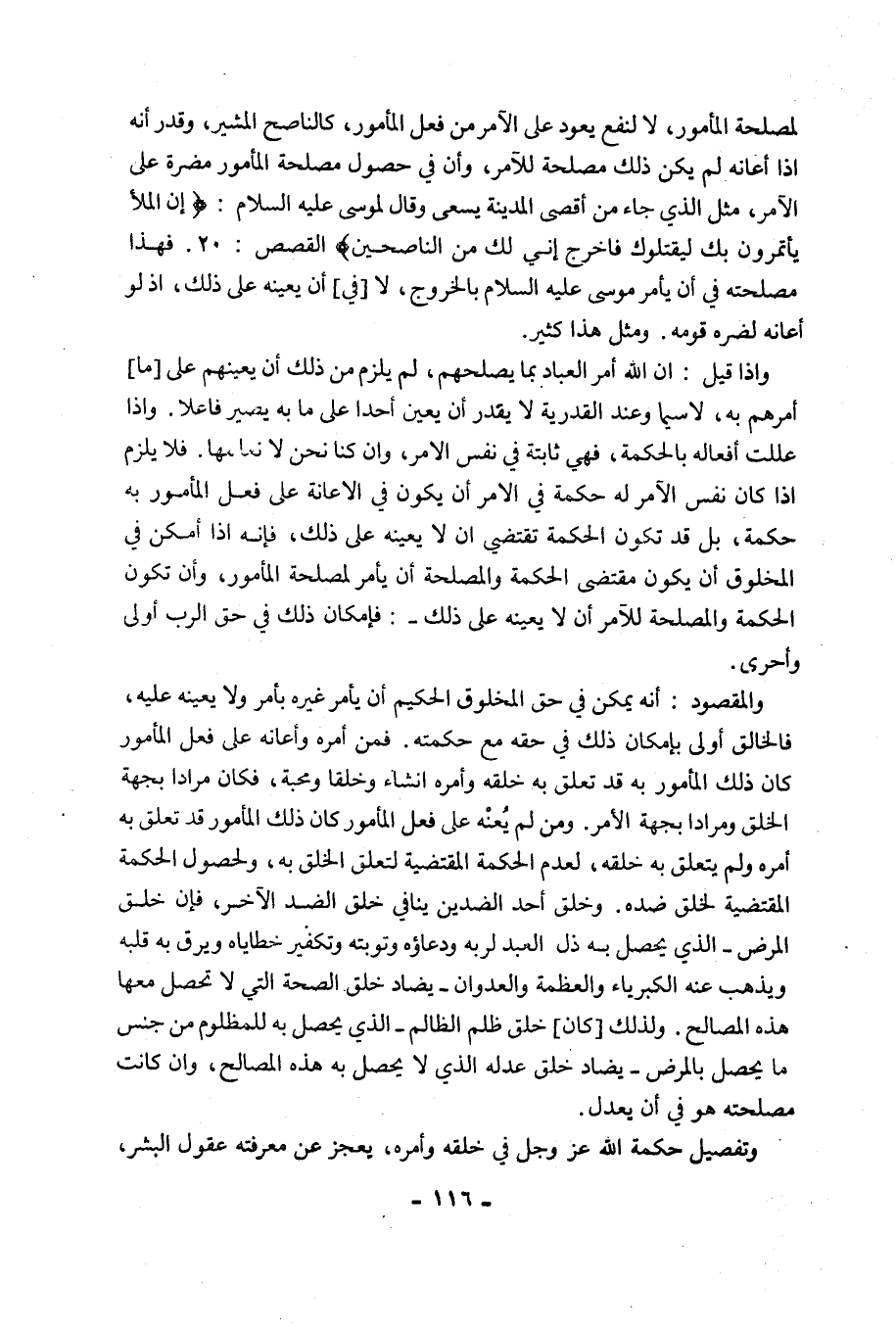 وَإِذَا قِيلَ: إِنَّ اللَّهَ أَمَرَ الْعِبَادَ بِمَا يُصْلِحُهُمْ، لَمْ يَلْزَمْ مِنْ ذَلِكَ أَنْ يُعِينَهُمْ عَلَى [مَا] أَمَرَهُمْ بِهِ، لَا سِيَّمَا وَعِنْدَ الْقَدَرِيَّةِ لَا يَقْدِرُ أَنْ يُعِينَ أَحَدًا عَلَى مَا بِهِ يَصِيرُ فَاعِلًا. وَإِذَا عُلِّلَتْ أَفْعَالُهُ بِالْحِكْمَةِ، فَهِيَ ثَابِتَةٌ فِي نَفْسِ الْأَمْرِ، وَإِنْ كُنَّا نَحْنُ لَا نَعْلَمُهَا. فلا يلزم إذا كان نَفْسِ الْآمِرِ لَهُ حِكْمَةٌ فِي الْأَمْرِ أَنْ يَكُونَ فِي الْإِعَانَةِ عَلَى فِعْلِ الْمَأْمُورِ بِهِ حِكْمَةٌ، بَلْ قَدْ تَكُونُ الْحِكْمَةُ تَقْتَضِي أَنْ لَا يُعِينَهُ عَلَى ذَلِكَ، فَإِنَّهُ إِذَا أَمْكَنَ فِي الْمَخْلُوقِ أَنْ يَكُونَ مُقْتَضَى الْحِكْمَةِ وَالْمَصْلَحَةِ أَنْ يَأْمُرَ لِمَصْلَحَةِ الْمَأْمُورِ، وَأَنْ تَكُونَ الْحِكْمَةُ وَالْمَصْلَحَةُ لِلْآمِرِ أَنْ لَا يُعِينَهُ عَلَى ذَلِكَ, فَإِمْكَانُ ذَلِكَ فِي حَقِّ الرَّبِّ أَوْلَى وَأَحْرَى.