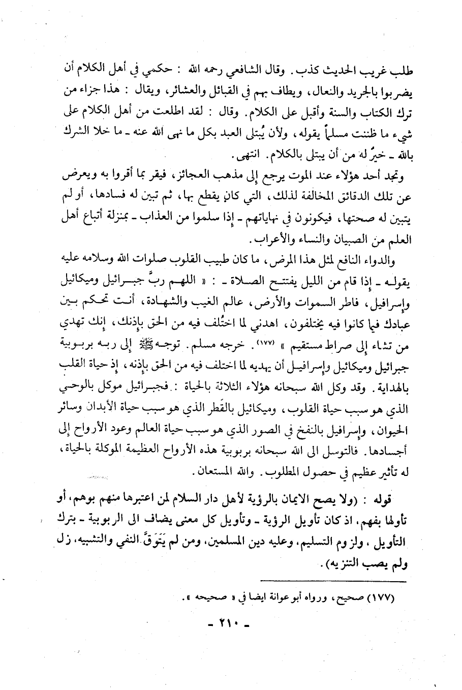 قَوْلُهُ: "وَلَا يَصِحُّ الْإِيمَانُ بِالرُّؤْيَةِ لِأَهْلِ دَارِ السَّلَامِ لِمَنِ اعْتَبَرَهَا مِنْهُمْ بِوَهْمٍ، أَوْ تَأَوَّلَهَا بِفَهْمٍ، إِذْ كَانَ تَأْوِيلُ الرُّؤْيَةِ -وَتَأْوِيلُ كُلِّ مَعْنًى يُضَافُ إلى الربوبية- بترك التَّأْوِيلِ، وَلُزُومَ التَّسْلِيمِ، وَعَلَيْهِ دِينُ الْمُسْلِمِينَ، وَمَنْ لَمْ يَتَوَقَّ النَّفْيَ وَالتَّشْبِيهَ، زَلَّ وَلَمْ يُصِبِ التنزيه".