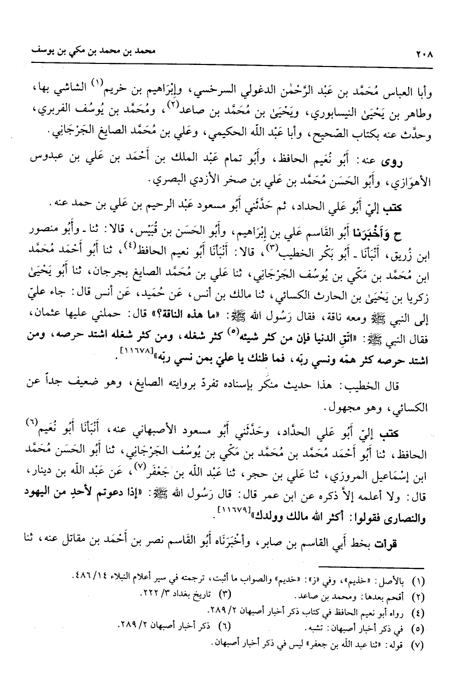 (4) رواه أبو نعيم الحافظ في كتاب ذكر أخبار أصبهان 2 / 289